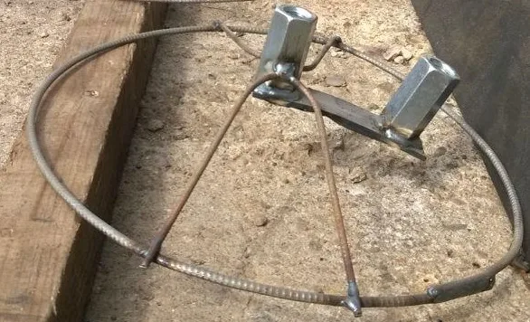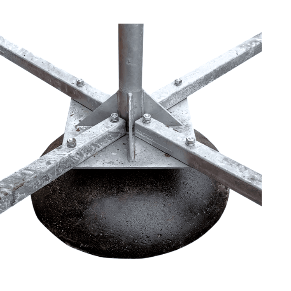 Основание представляет собой бетонную полусферу, армированную металлической закладной. Оно покрыто влагоотталкивающим средством и имеет 2 гайки для резьбового соединения.