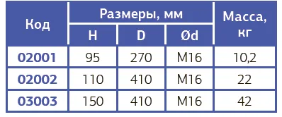 Использование:Предназначено для установки на плоской кровле молниеприемников высотой: 1-2 м (арт. 02001 (М16), 02002); 3-4 м (код 03003), а также используются в качестве комплектующих для опор (арт. 04016, 04009, 04010).