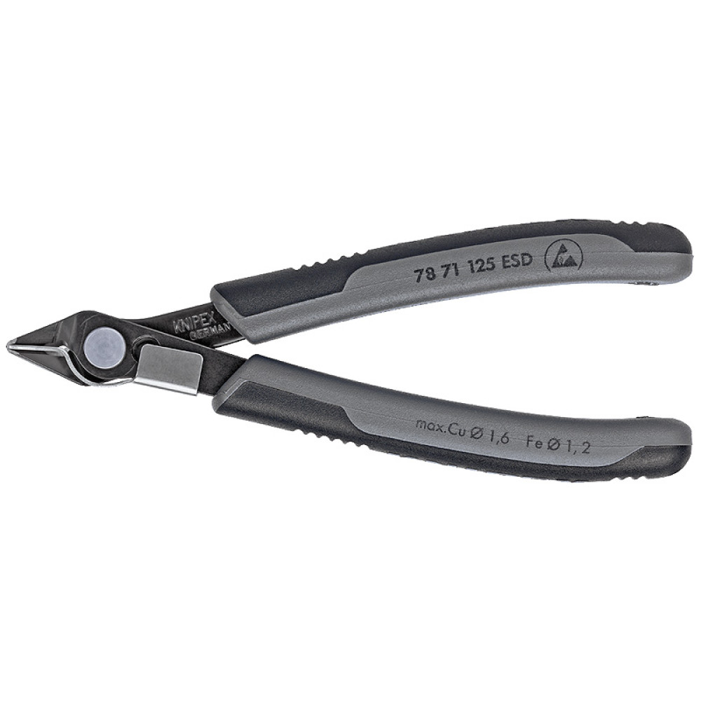 Бокорезы прецизионные Electronic Super Knips®, кромка без фаски, L-125 мм, антистатические, чёрные, 2-комп. рукоятки (KNIPEX)