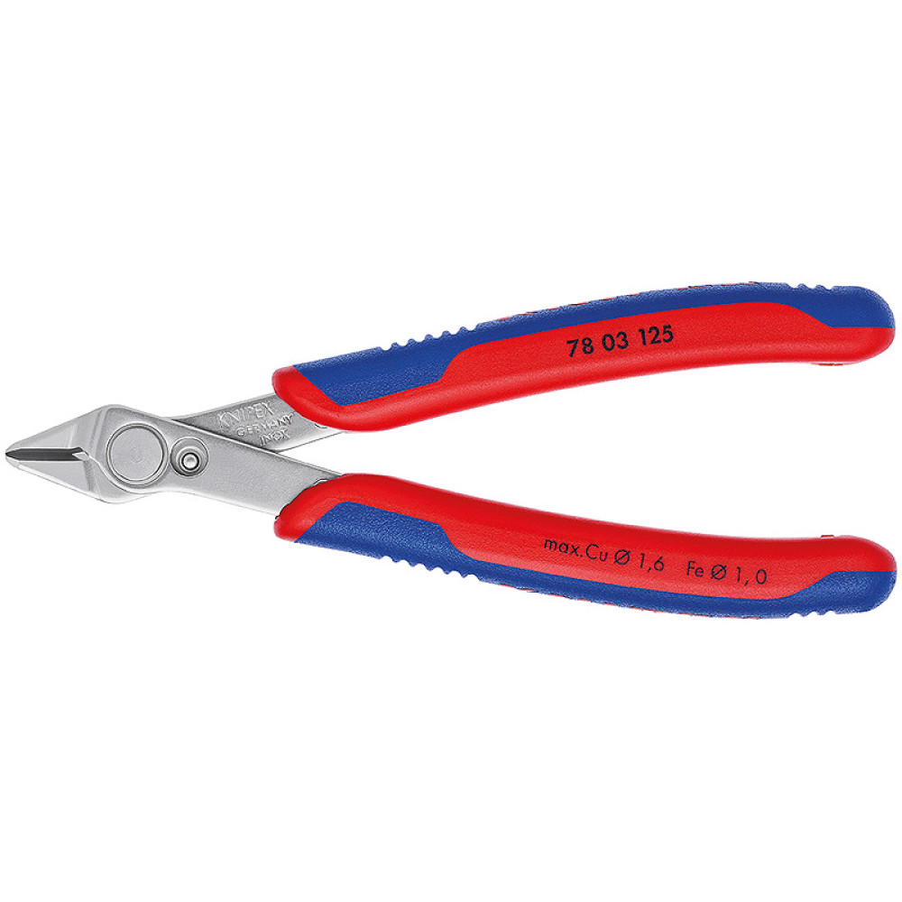 Бокорезы прецизионные Electronic Super Knips® кромка без фаски,L-125 мм, твёрдость 54 HRC, INOX, 2-комп. рукоятки (KNIPEX)