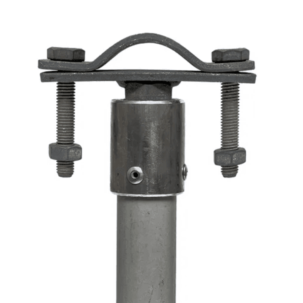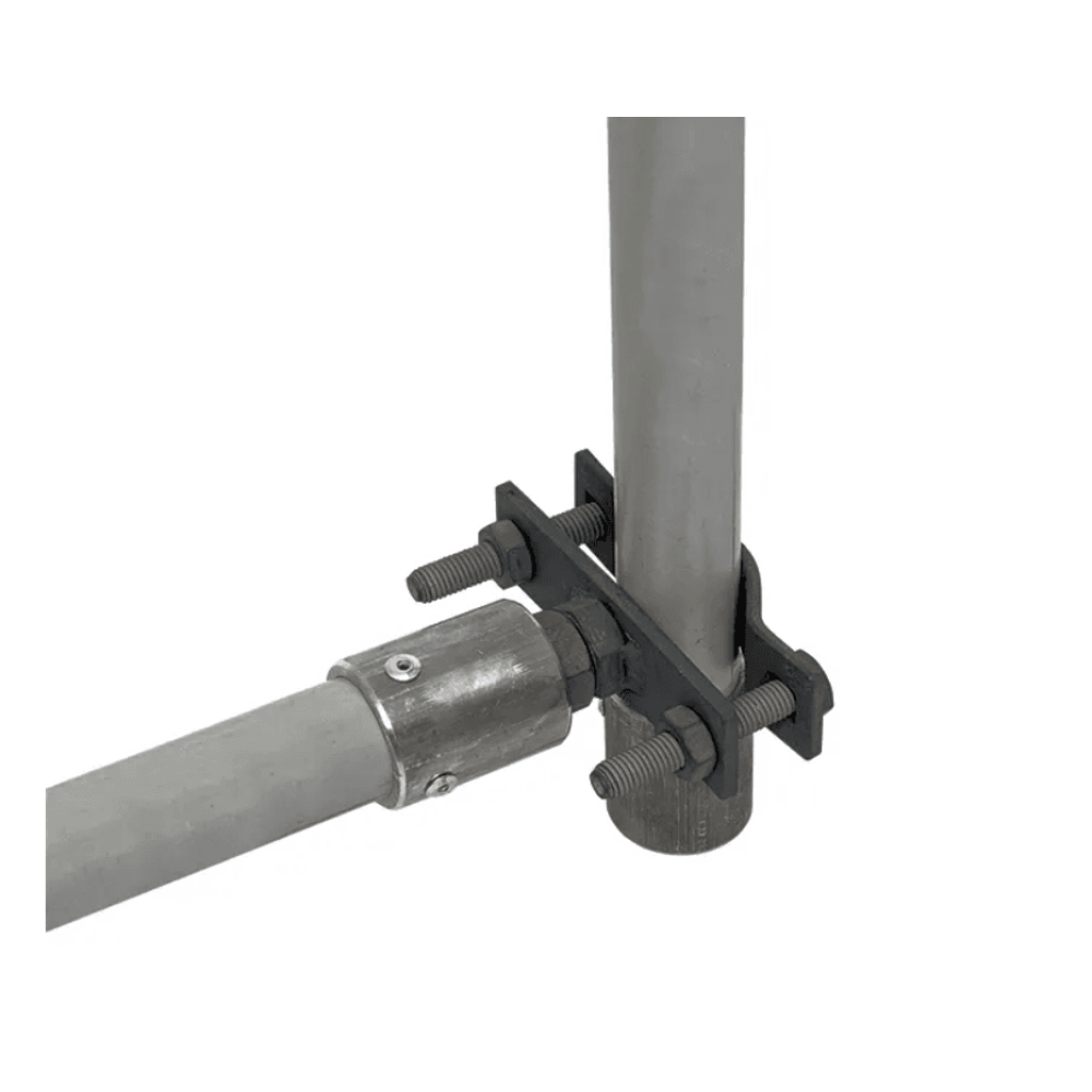 Держатель для молниеприёмной мачты предназначен для надежного закрепления мачты молниеприемника на стене здания. Жесткая конструкция обеспечивает стабильное и безопасное соединение, позволяя эффективно устанавливать молниеприемную мачту на вертикальной поверхности.