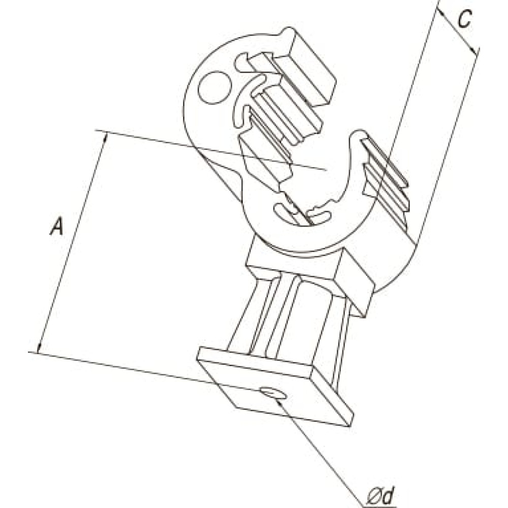 Крепление токоотвода (Ø 8-10 мм) осуществляется с помощью защелкивания держателя. Его конструкция обеспечивает плотное прилегание ко всей внутренней поверхности, что способствует надежной фиксации проводника. Плотность зажима регулируется количеством щелчков застежки.