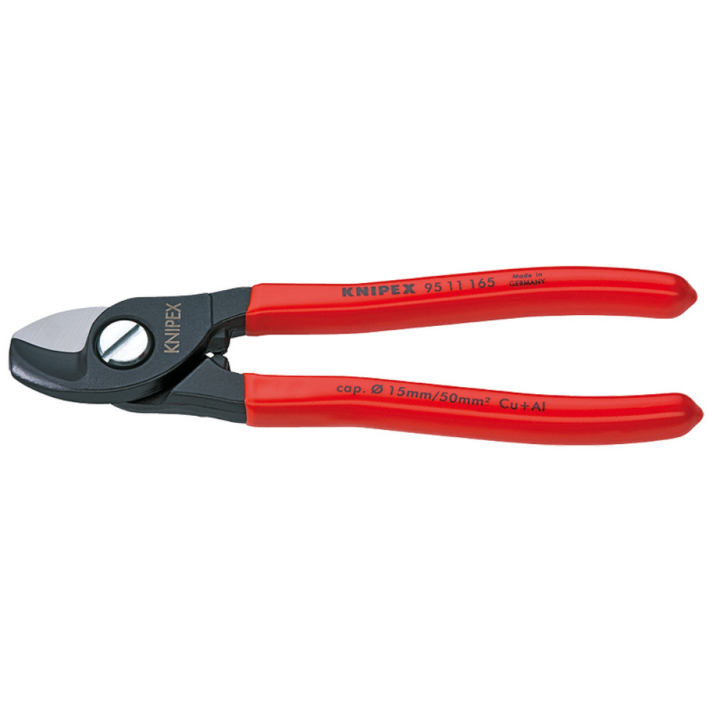 Кабелерез, рез: кабель D 15 мм (50 мм, AWG 1/0), L-165 мм, чёрный, обливные рукоятки, SB (KNIPEX)