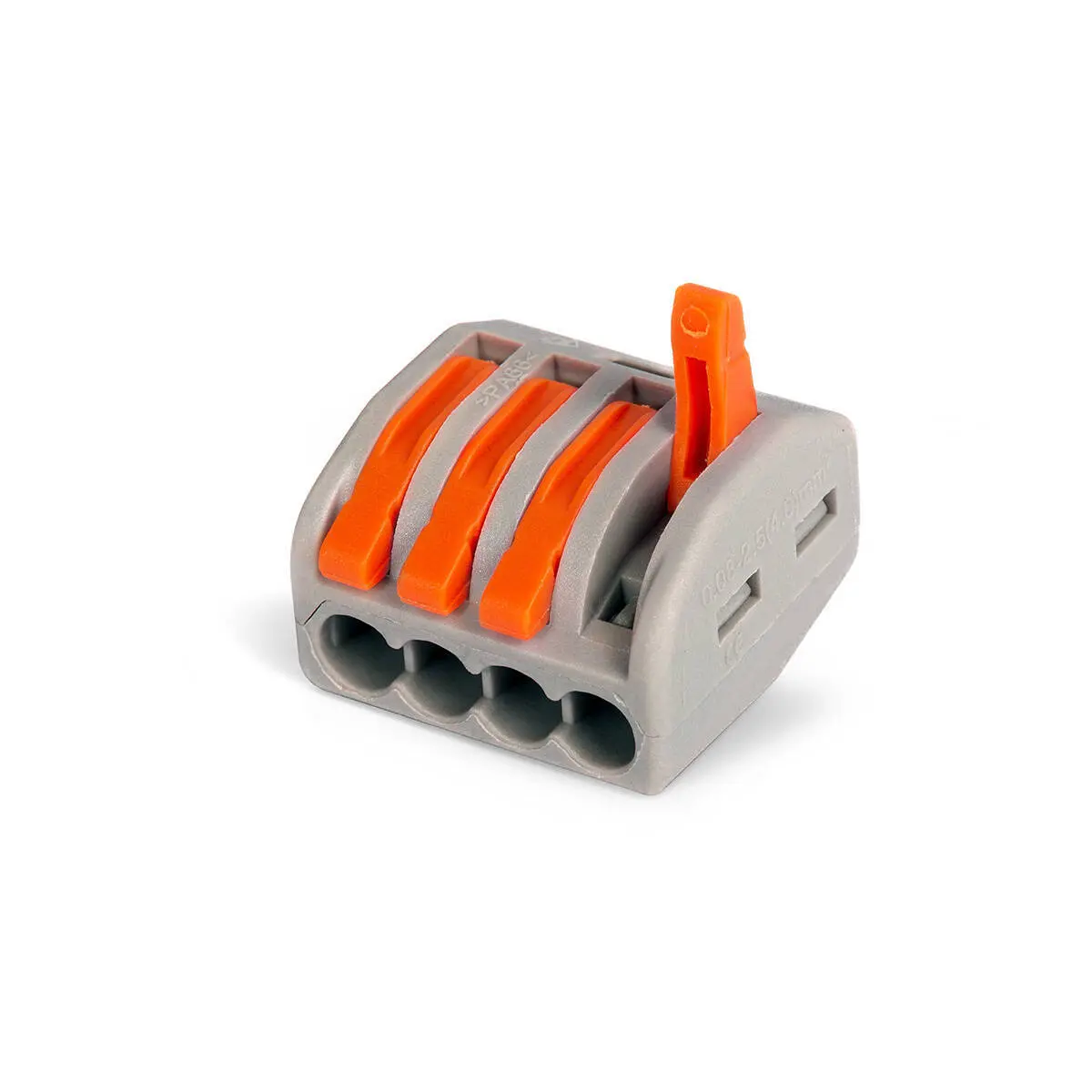 - Зажим проводов в клемме осуществляется при помощи оранжевых рычагов