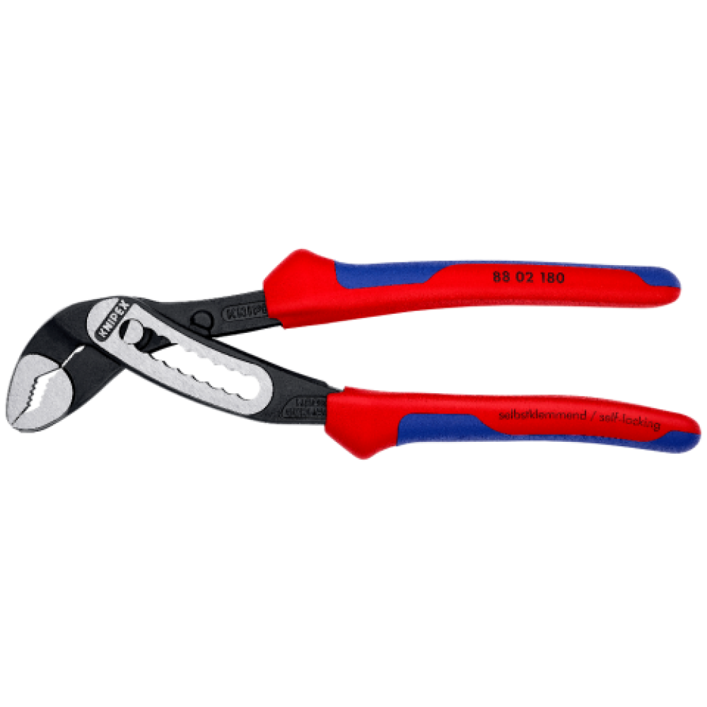 Клещи сантехнические Alligator ®, 180 мм, KNIPEX 88 02 180 KN-8802180 Описание - Больше производительности и удобства в работе по сравнению с обычными сантехническими клещами аналогичной длины: 9-ступенчатая регулировка и увеличенная на 30 % захватывающая способность. - Хороший доступ к детали благодаря тонкой конструкции в области головки и шарнира. - Функция смыкания губок, которая облегчает работу в узких и труднодоступных местах. - Самофиксируются на трубах и гайках: нет скольжения по детали, работа без утомления. - Захватные губки со специально закаленными зубцами, твердость зубцов примерно 61 HRC: надежный захват при высокой износостойкости. - Коробчатый шарнир: высокая стабильность благодаря двум направляющим. - Прочная конструкция, устойчивы к загрязнениям; особенно подходят для работ вне помещения. - Специальный механизм предотвращает случайное защемление пальцев. - Хромованадиевая электросталь, кованая, закалённая в масле. [ https://mvgrp.ru/wp-content/uploads/2017/01/opisanie_alligator.png ] Диапазон зажима - Для труб 1 1/2" / 42 мм - Размер под ключ 36 мм Количество позиций установки - 9 Характеристики - Черненые, полированные - Двухкомпонентные чехлы - Длина 180 мм - Вес 215 г [ https://knipex-shop.ru/published/publicdata/WWWKNIPEXSHOPRU/attachments/SC/images/88_02.jpg ] Видео