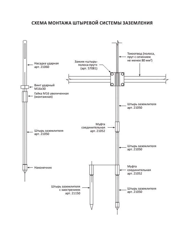 - Монтаж штыревой системы заземления может производиться даже одним человеком;