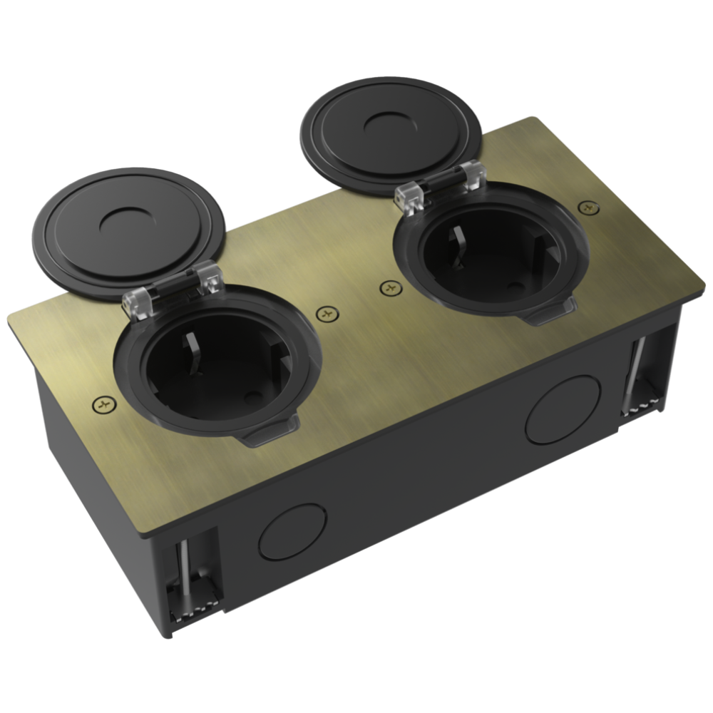Напольные лючки Donel – решение для организации рабочих мест, как в открытых пространствах типа «Open Space», так и в индивидуальных помещениях и комнатах переговоров.Предназначены для монтажа модульных электроустановочных изделий 45х45 мм в плиты фальш-пола или в бетонный пол.- Степень защиты от влаги и пыли IP44- Степень защиты от ударов IK09- Установка заподлицо с напольным покрытием (при установке в стяжку)- Возможность установки составного блока из нескольких лючков (для отдельного типа лючков)ВНИМАНИЕ! Степень защиты IP44 возможна только при полностью закрытой крышке лючка, при этом не допускается никаких внешних подключений к электроустановочным модулям, установленным в лючке.В комплект поставки установочная коробка для фальш-пола и коробка для стяжки не входит и приобретается отдельно.Электроустановочные изделия, слаботочные и мультимедийные разъемы стандарта 45х45 в комплект поставки не входят и приобретаются отдельно.- для монтажа в бетонную стяжку использовать установочную коробку DFB22MRBCF в комплект поставки не входит и приобретается отдельно.- для монтажа в плиты фальш-пола использовать установочную коробку DFB22MRBFF в комплект поставки не входит и приобретается отдельно.