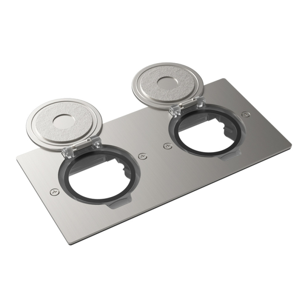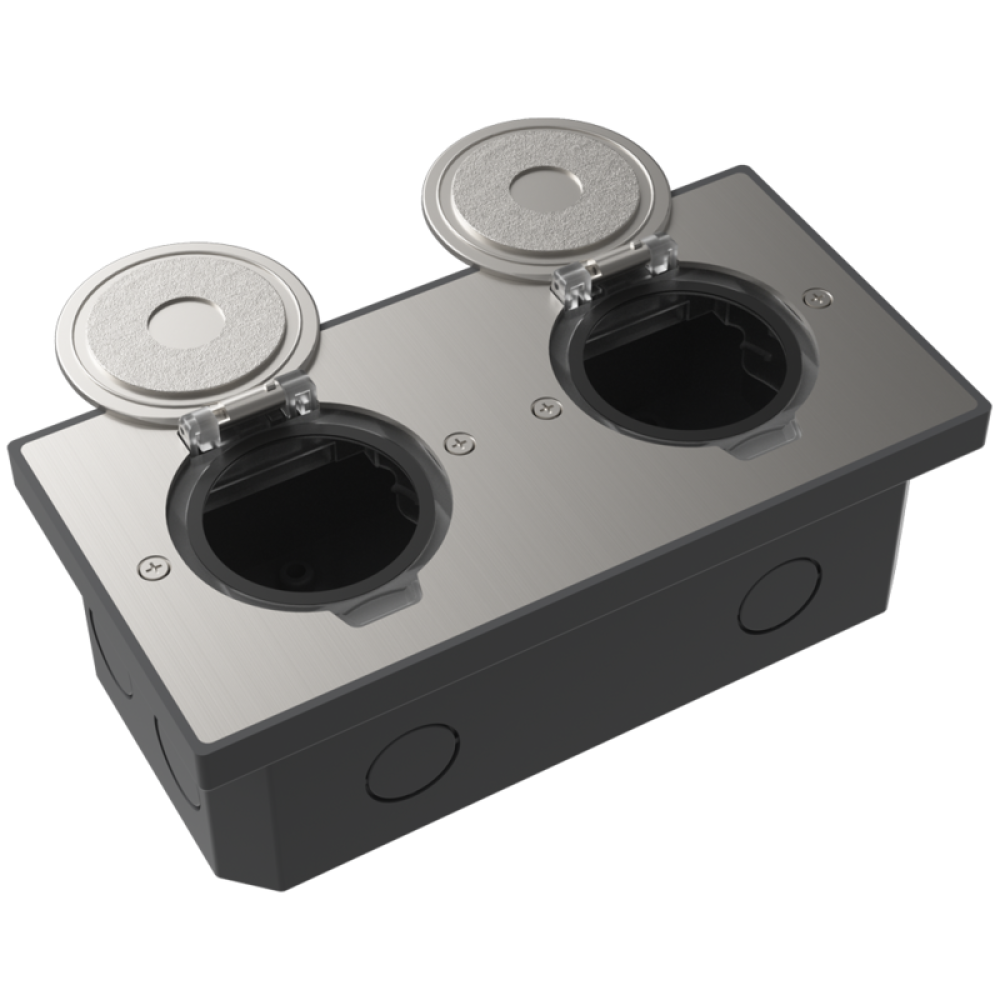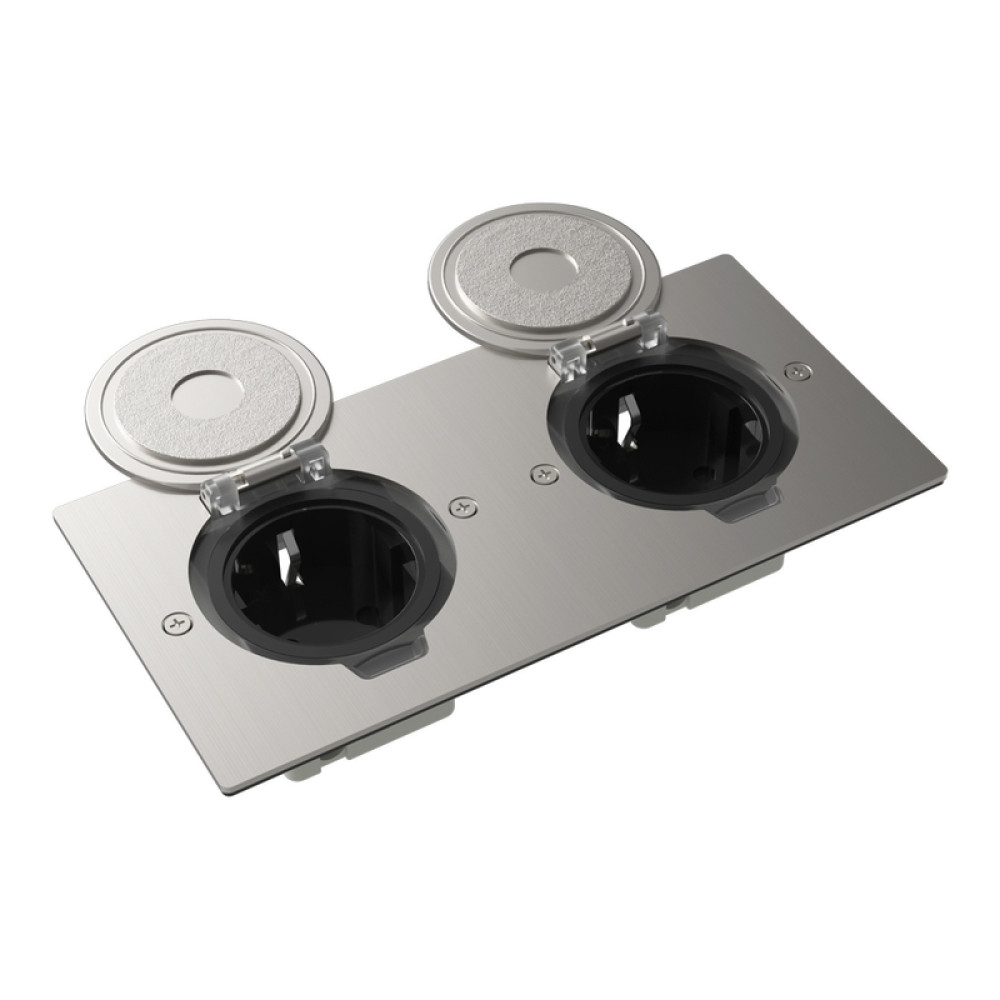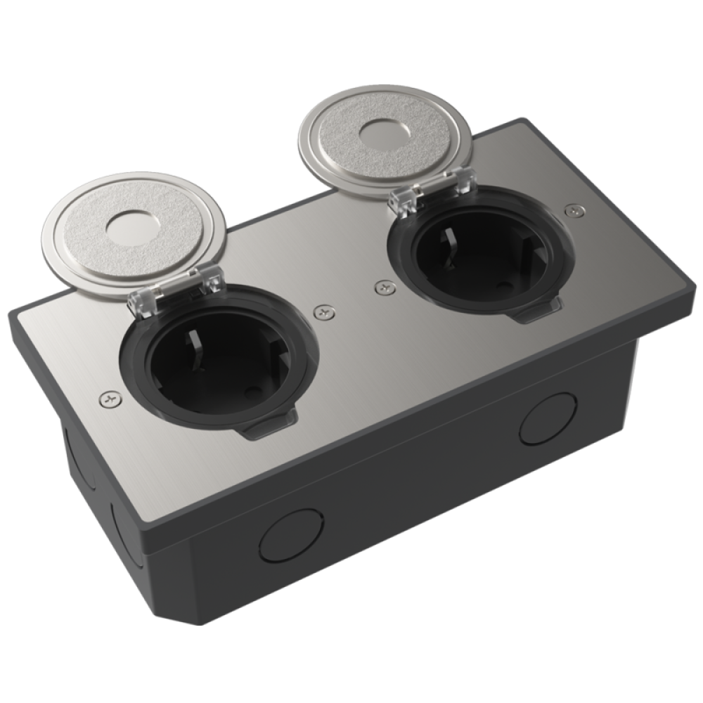 Напольные лючки Donel – решение для организации рабочих мест, как в открытых пространствах типа «Open Space», так и в индивидуальных помещениях и комнатах переговоров.Предназначены для монтажа модульных электроустановочных изделий 45х45 мм в плиты фальш-пола или в бетонный пол.- Степень защиты от влаги и пыли IP44- Степень защиты от ударов IK09- Установка заподлицо с напольным покрытием (при установке в стяжку)- Возможность установки составного блока из нескольких лючков (для отдельного типа лючков)ВНИМАНИЕ! Степень защиты IP44 возможна только при полностью закрытой крышке лючка, при этом не допускается никаких внешних подключений к электроустановочным модулям, установленным в лючке.В комплект поставки установочная коробка для фальш-пола и коробка для стяжки не входит и приобретается отдельно.Электроустановочные изделия, слаботочные и мультимедийные разъемы стандарта 45х45 в комплект поставки не входят и приобретаются отдельно.- для монтажа в бетонную стяжку использовать установочную коробку DFB22MRBCF в комплект поставки не входит и приобретается отдельно.- для монтажа в плиты фальш-пола использовать установочную коробку DFB22MRBFF в комплект поставки не входит и приобретается отдельно.