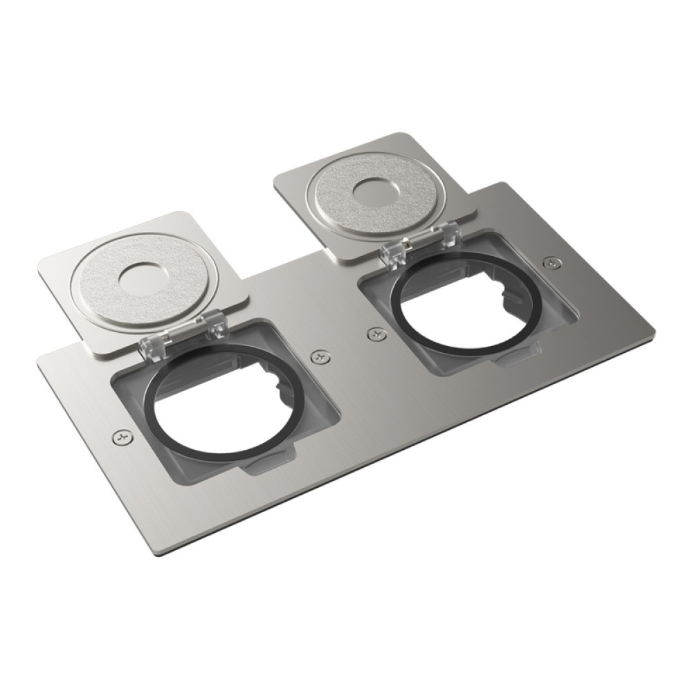 Напольные лючки Donel – решение для организации рабочих мест, как в открытых пространствах типа «Open Space», так и в индивидуальных помещениях и комнатах переговоров.Предназначены для монтажа модульных электроустановочных изделий 45х45 мм в плиты фальш-пола или в бетонный пол.- Степень защиты от влаги и пыли IP44- Степень защиты от ударов IK09- Установка заподлицо с напольным покрытием (при установке в стяжку)- Возможность установки составного блока из нескольких лючков (для отдельного типа лючков)ВНИМАНИЕ! Степень защиты IP44 возможна только при полностью закрытой крышке лючка, при этом не допускается никаких внешних подключений к электроустановочным модулям, установленным в лючке.В комплект поставки установочная коробка для фальш-пола и коробка для стяжки не входит и приобретается отдельно.Электроустановочные изделия, слаботочные и мультимедийные разъемы стандарта 45х45 в комплект поставки не входят и приобретаются отдельно.- для монтажа в бетонную стяжку использовать установочную коробку DFB22MRBCF в комплект поставки не входит и приобретается отдельно.- для монтажа в плиты фальш-пола использовать установочную коробку DFB22MRBFF в комплект поставки не входит и приобретается отдельно.