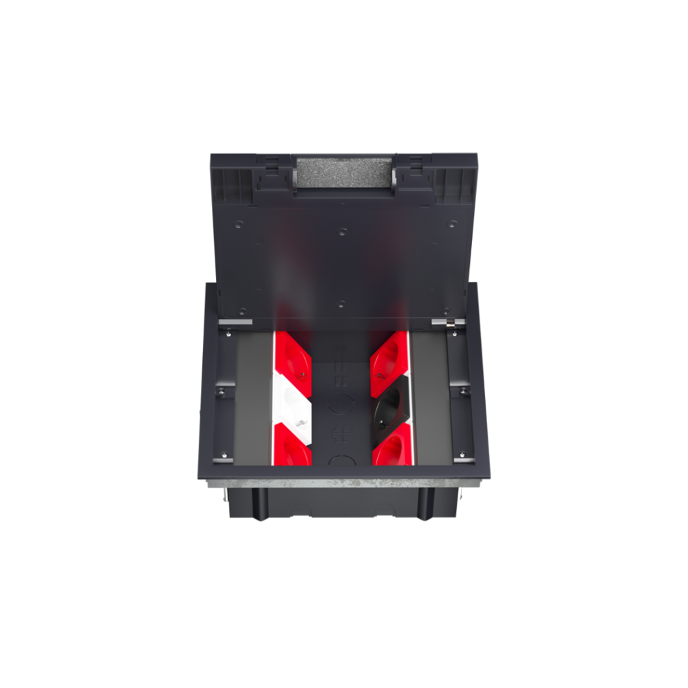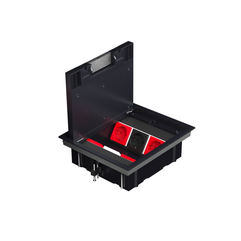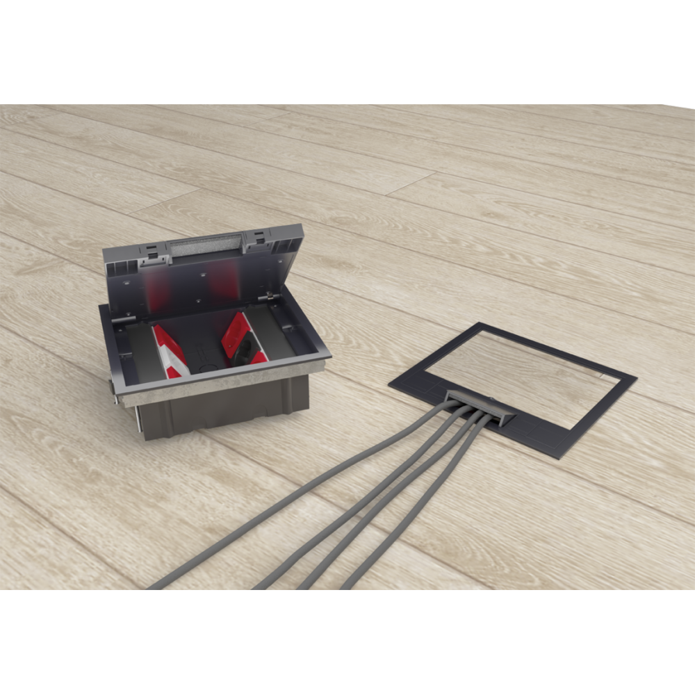 • Решения для задач по организации рабочих мест в офисных пространствах типа "open-space" или в помещениях любого другого типа, где используется прокладка кабельных трасс под полом (в полу)• Pешение для установки в фальш-пол или бетонную стяжку• Решение организации кабельно выводаДля установки в бетонную стяжку необходимо приобрести монтажную коробку для установки в стяжку, артикул DFB12SB