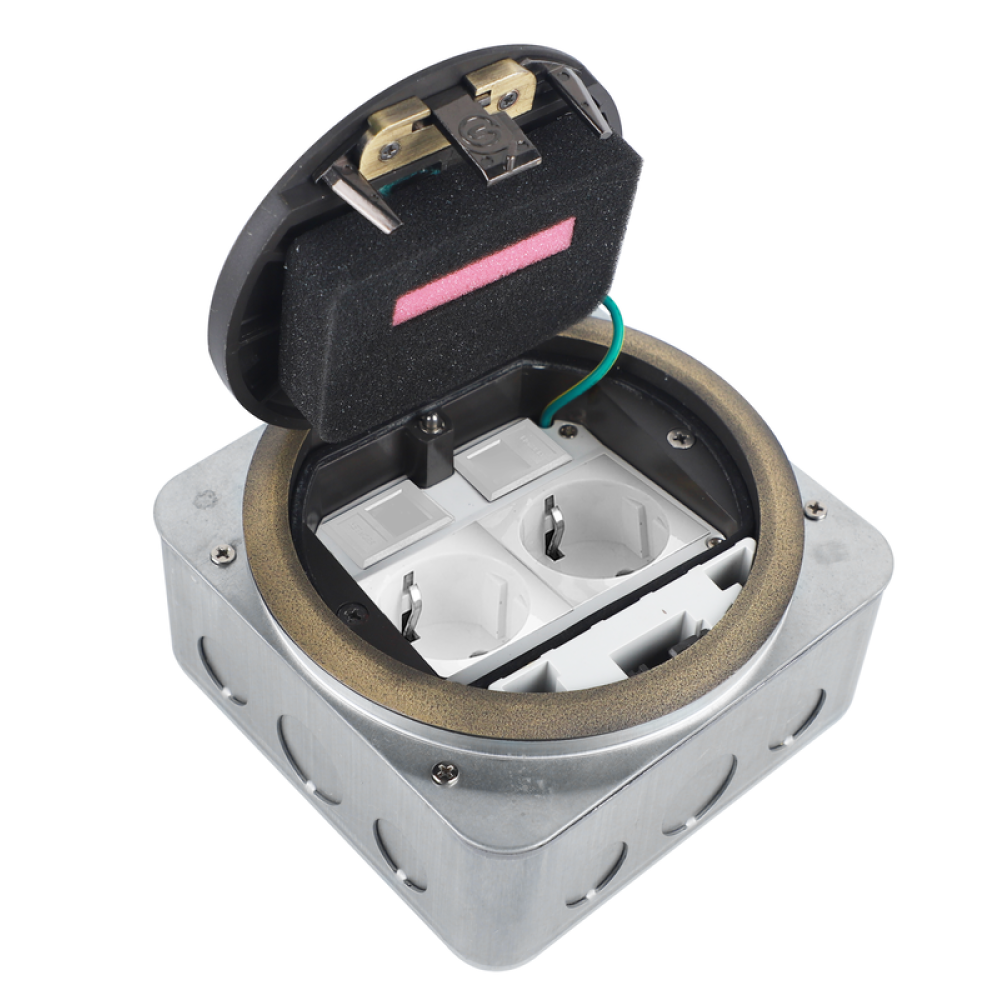 Лючок в пол 4 мод. (2 мод. 45х45 мм.), античная латунь, круглый, металл, IP65