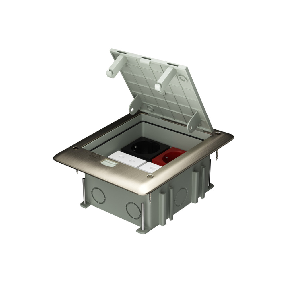 Лючок в пол 6 мод. (2 мод. 45х45 мм. + 2 мод. 22.5х45 мм.), металл, IP66, (с уст. набором)