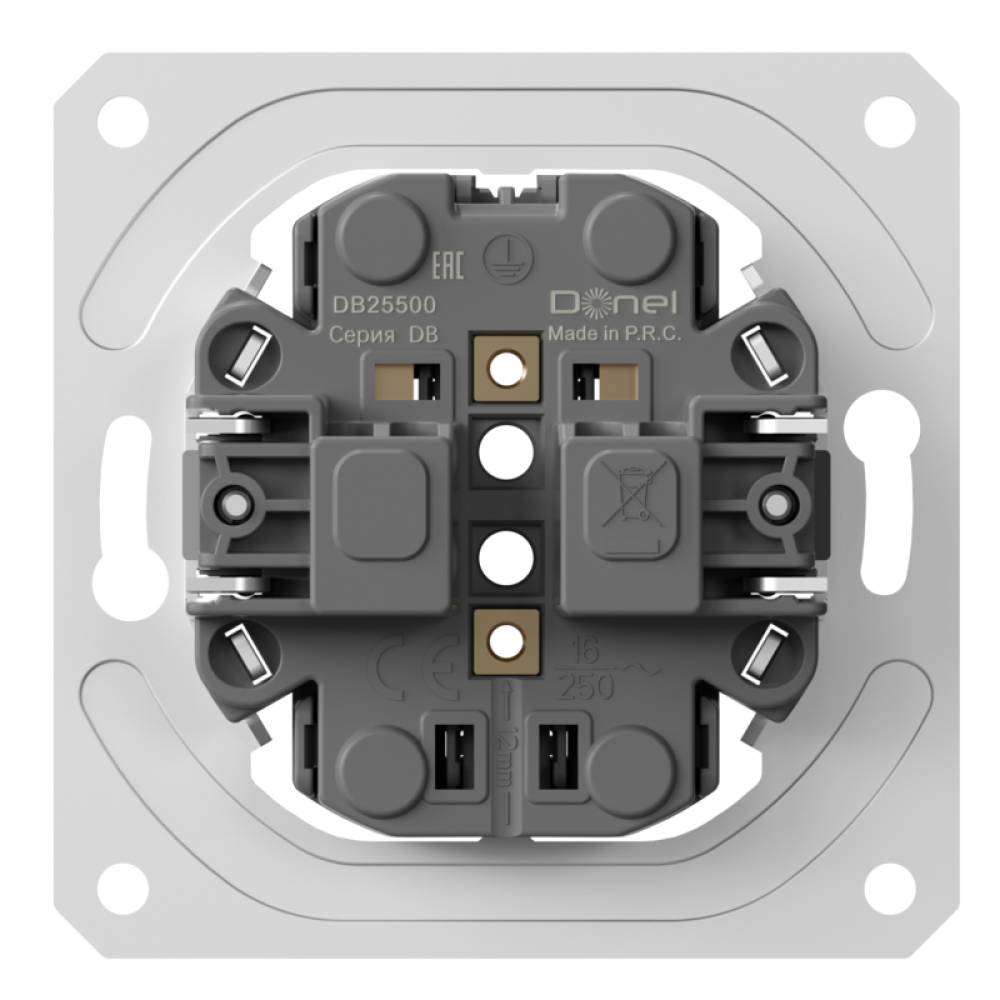 Механизм розетки двойной без заземления 16А 250В~ на винтах, серия DB