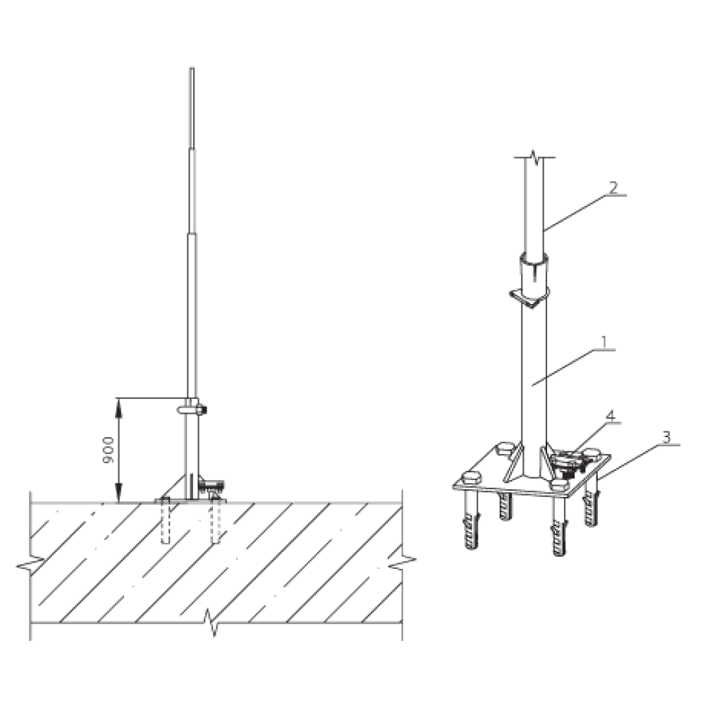 Мачта молниеприемника устанавливается с использованием прочных бетонных оснований и треноги, что гарантирует надежность и устойчивость всей системы. При попадании молнии мачта безопасно направляет разряд в землю, предотвращая его воздействие на объект.