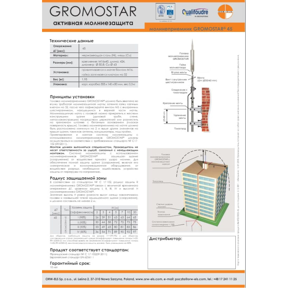 - Активный молниеприемник Gromostar 60/45