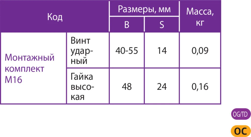 Монтажный комплект применяется при монтаже системы заземления для присоединения штыря заземления к перфоратору. В комплект входят винт и гайка, которые принимают основную ударную осевую нагрузку на себя. Эти компоненты являются расходным материалом и предназначены для обеспечения надежной и эффективной работы системы заземления в процессе монтажа.OC— Покрытие металла методом гальванического цинкования
