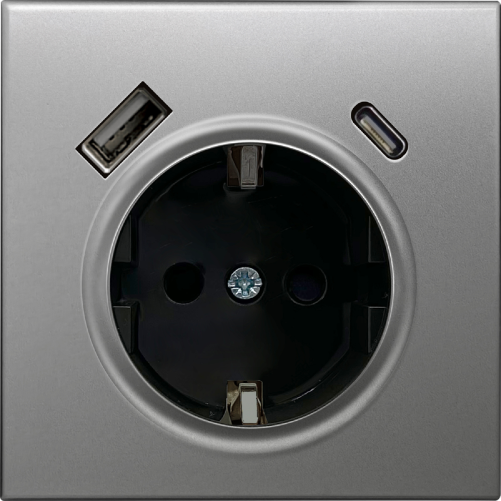 Donel R98 METAL благородная сталь накладка для розетки Schuko с зарядным устройством USB A+C, с защитными шторками , серия DA