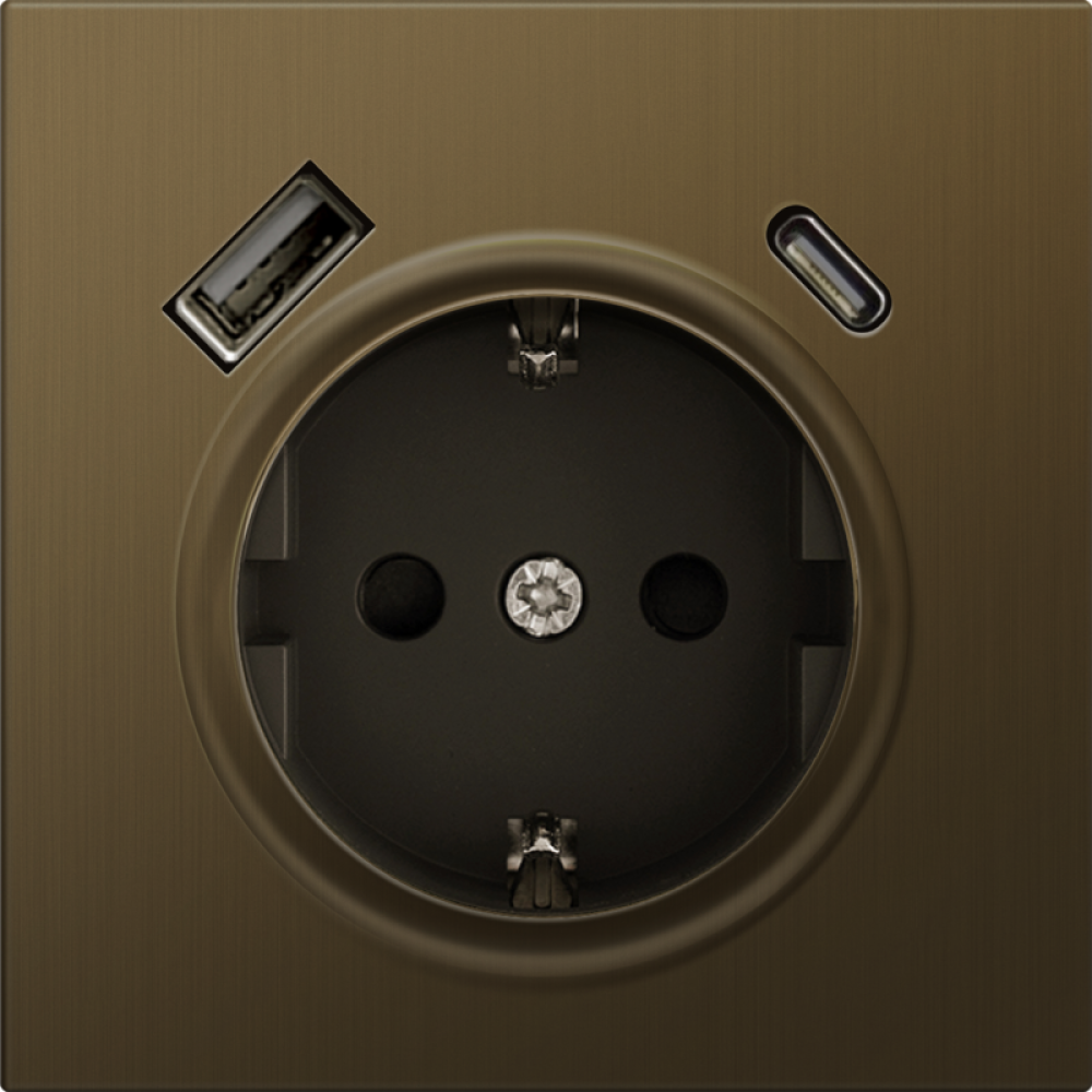Donel R98 METAL латунь накладка для розетки Schuko с зарядным устройством USB A+C, с защитными шторками , серия DA