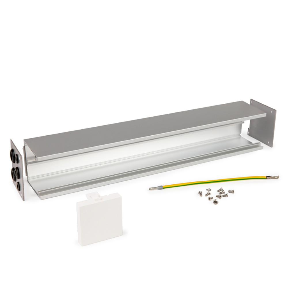 Donel Настольный розеточный блок 4 мод. (2 мод. 45х45)Торцевые заглушки, фронтальная заглушка, комплект заземления не предустановлены.