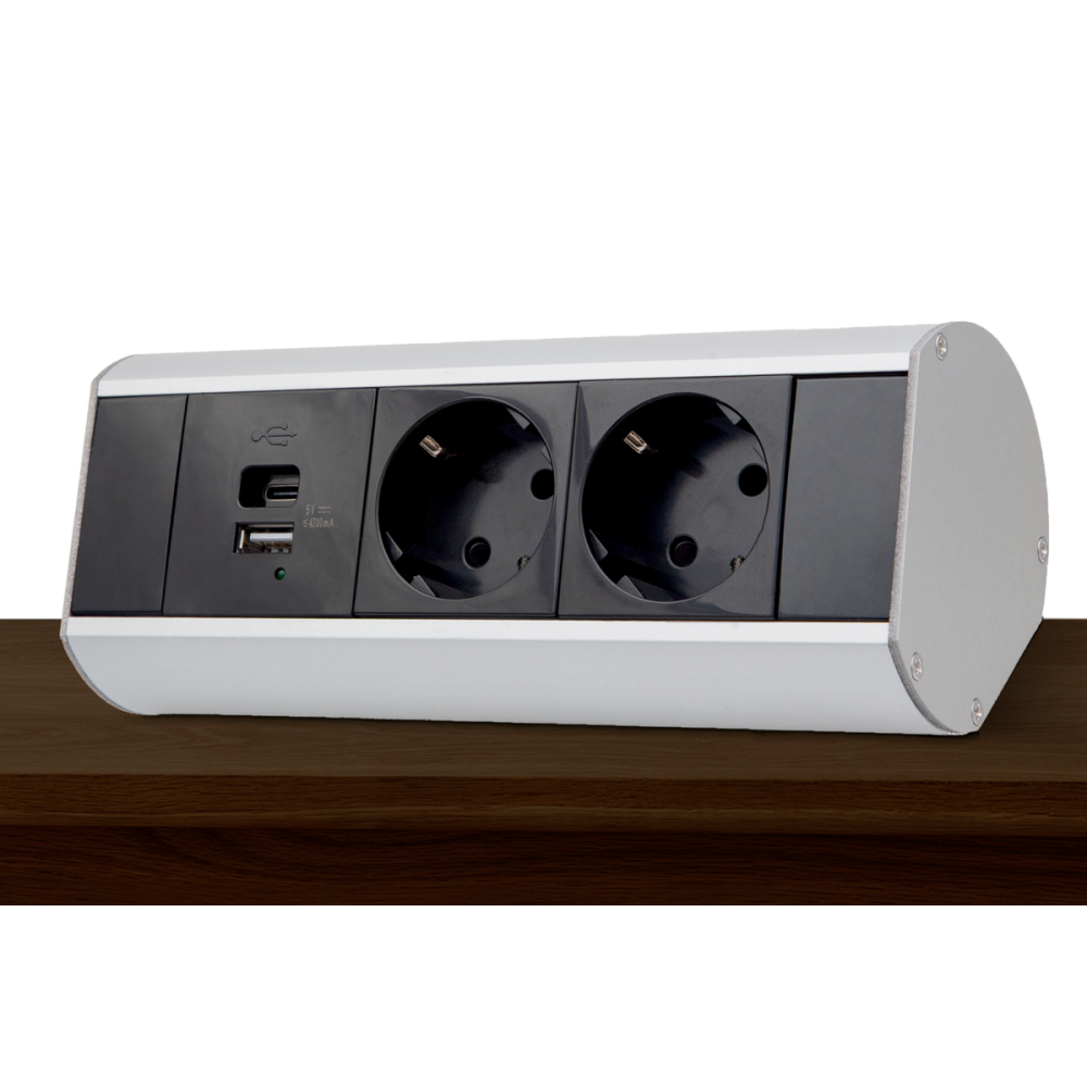 Настольный розеточный блок Ovaledesign в сборе: 2х220V, USB Type A+C, кабель