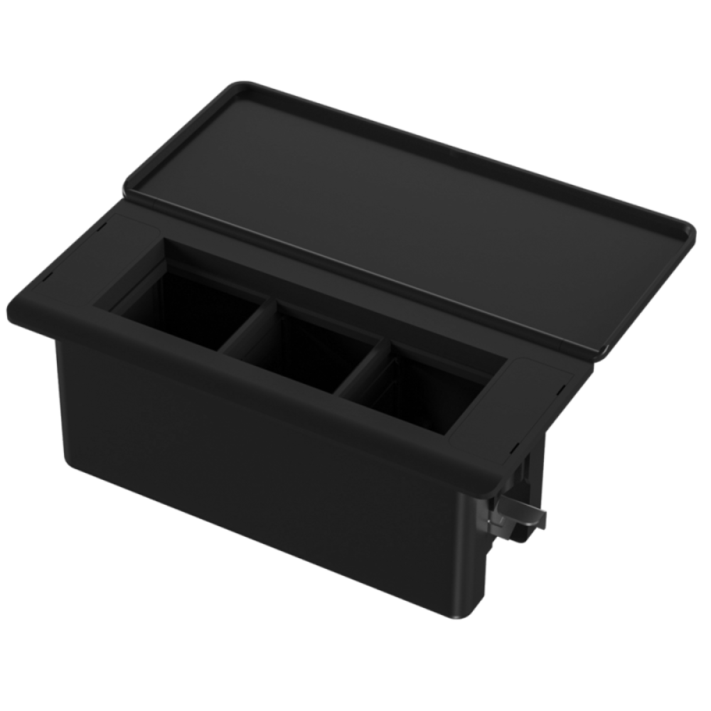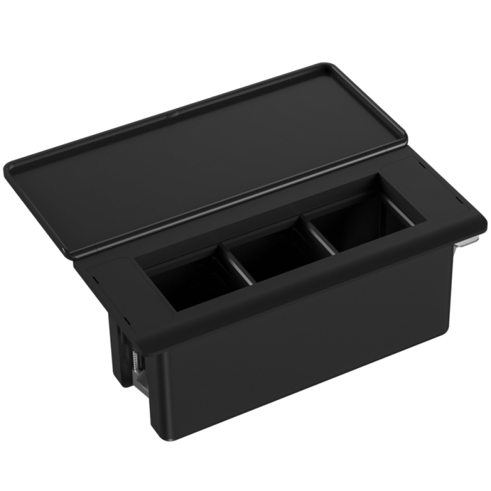 Настольный встраиваемый розеточный блок с откидной крышкой Spread 6 мод. (3 мод. 45х45), черный