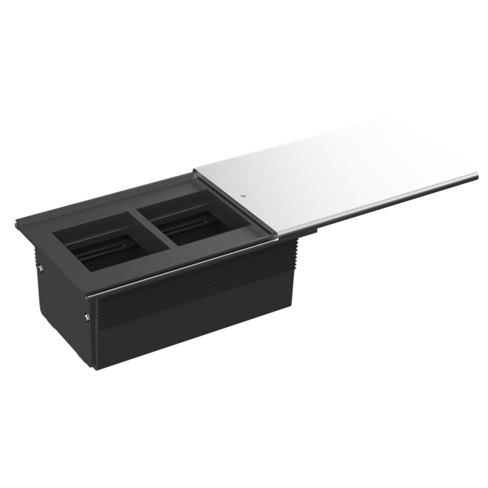 Настольные встраиваемые розеточные блоки с сдвижной крышкой - решения для организации подключения к электропитанию открытых офисных пространств, комнат переговоров, конференц-залов, гостиничных номеров, индивидуальных рабочих мест home office.ВНИМАНИЕ!!! Электроустановочные изделия, слаботочные и мультимедийные разъемы стандарта 45х45, а так же кабель для подключения в комплект поставки не входят и приобретаются отдельно.