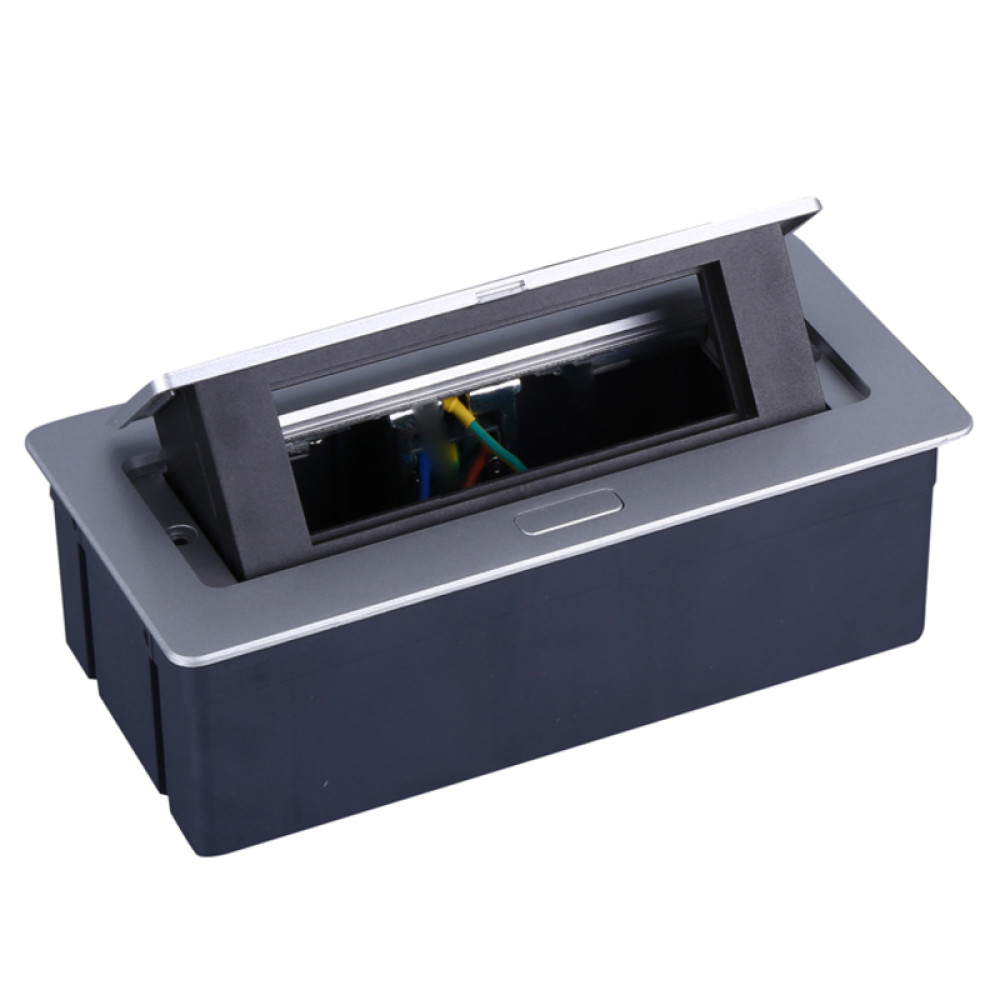 Настольный встраиваемый выдвижной розеточный блок - решение для организации подключения к электропитанию не только комнат переговоров, открытых офисных пространств, конференц- залов, гостиничных номеров, но и домашних пространств и индивидуальных рабочих мест home office.ВНИМАНИЕ!!! Электроустановочные изделия, слаботочные и мультимедийные разъемы стандарта 45х45, а так же кабель для подключения в комплект поставки не входят и приобретаются отдельно.