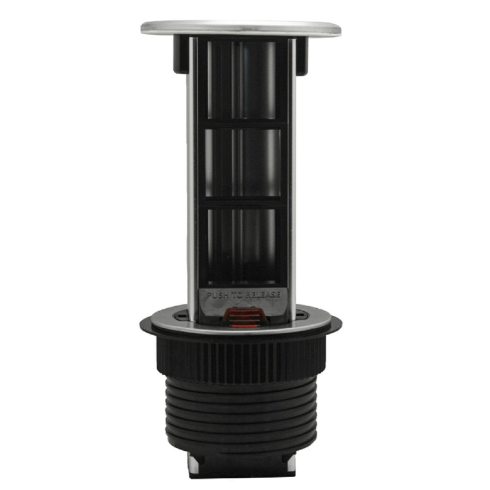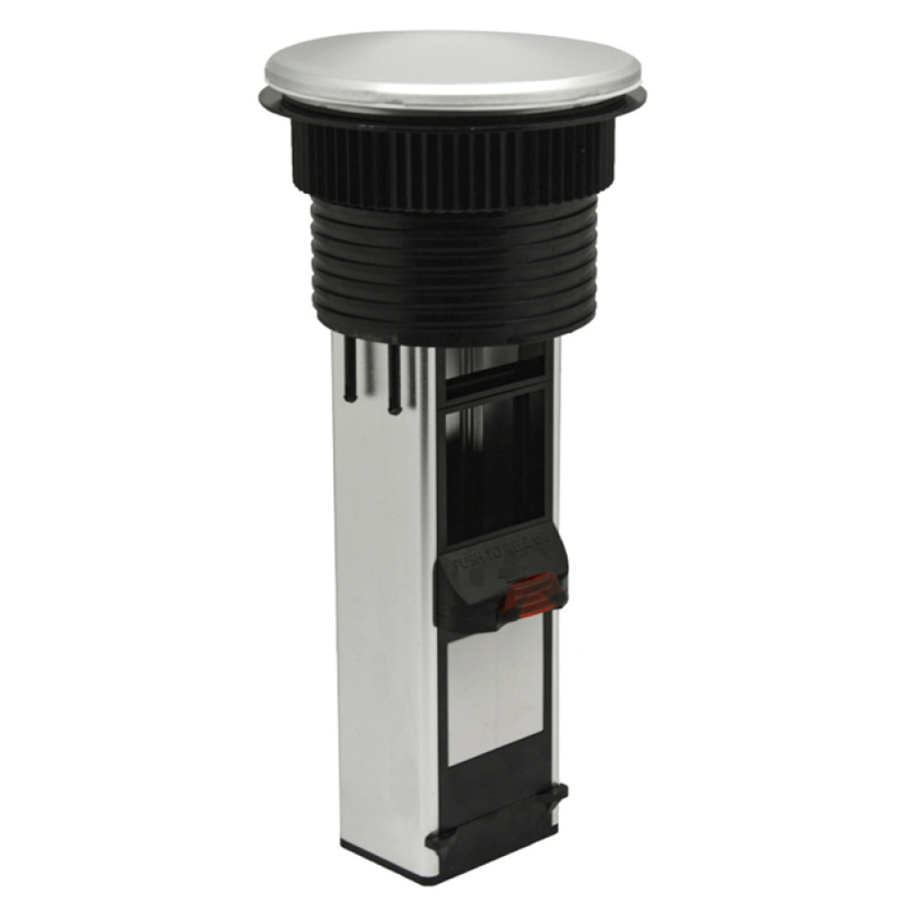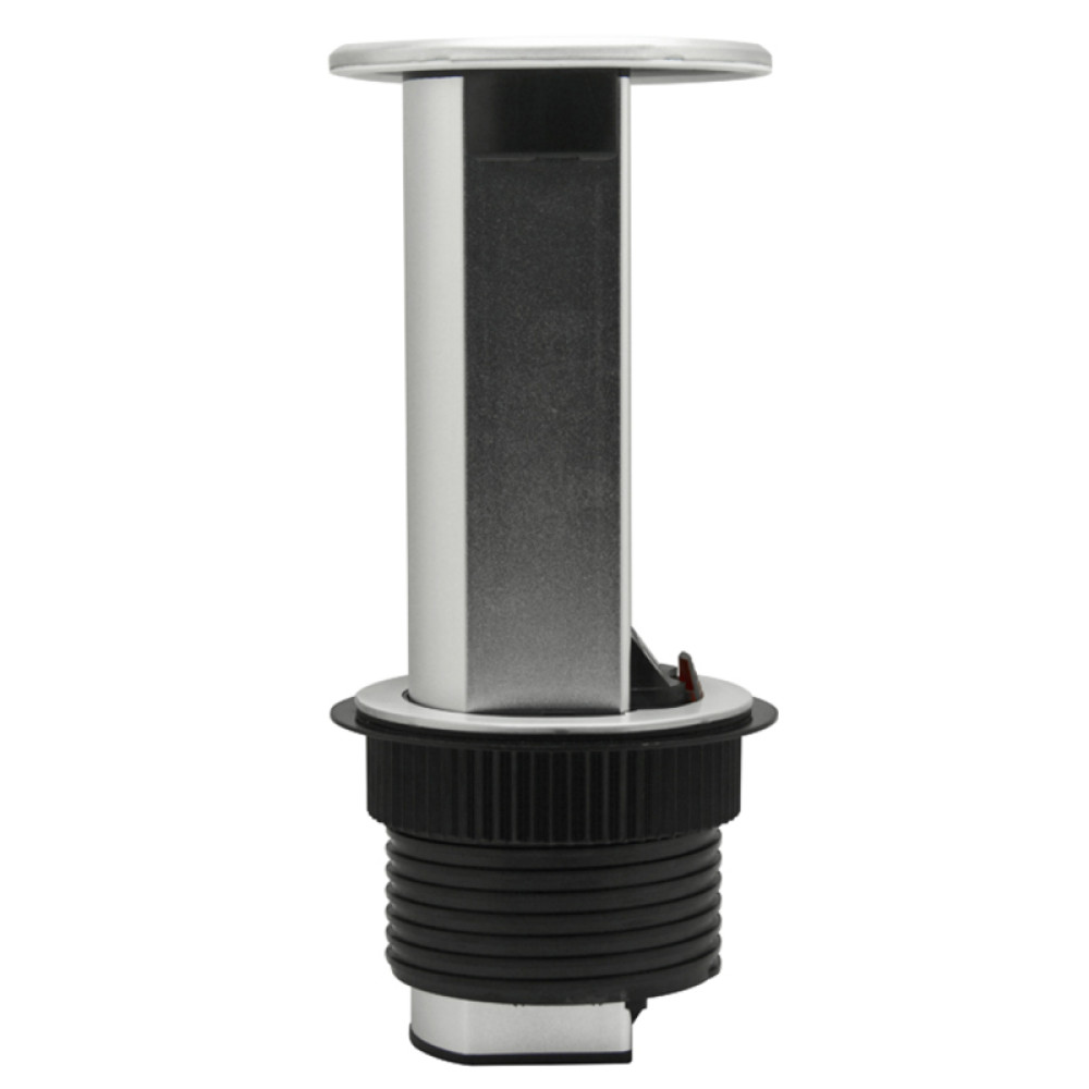 Настольный встраиваемый выдвижной розеточный блок Vertical - решение для организации подключения к электропитанию не только комнат переговоров, открытых офисных пространств, конференц-залов, гостиничных номеров, но и для домашних (кухонных) пространств индивидуальных рабочих мест home office.Верхняя крышка с классом защиты IP54 в закрытом положении обеспечивает надежную защиту от проникновения воды и пыли.Степень защиты IP54 возможна только при полностью закрытом положении, при этом не допускается ни каких внешних подключений к электроустановочным модулям, установленным в блоке.ВНИМАНИЕ!!! Электроустановочные изделия, слаботочные и мультимедийные разъемы стандарта 45х45, а так же кабель для подключения в комплект поставки не входят и приобретаются отдельно.
