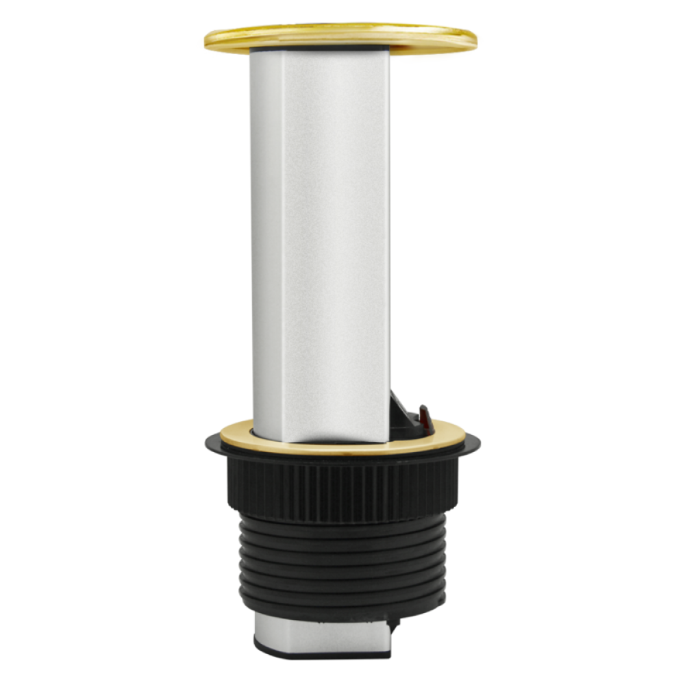 Настольный встраиваемый выдвижной розеточный блок Vertical - решение для организации подключения к электропитанию не только комнат переговоров, открытых офисных пространств, конференц-залов, гостиничных номеров, но и домашних (кухонных) пространств и индивидуальных рабочих мест home office.Верхняя крышка с классом защиты IP54 в закрытом положении обеспечивает надежную защиту от проникновения воды и пыли.Степень защиты IP54 возможна только при полностью закрытом положении, при этом не допускается ни каких внешних подключений к электроустановочным модулям, установленным в блоке.Электроустановочные изделия, слаботочные и мультимедийные разъемы стандарта 45х45, а так же кабель для подключения в комплект поставки не входят и приобретаются отдельно.