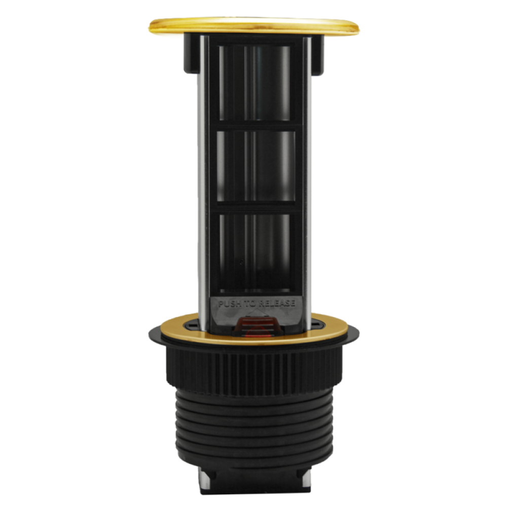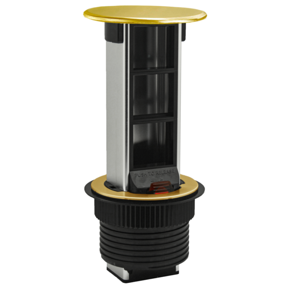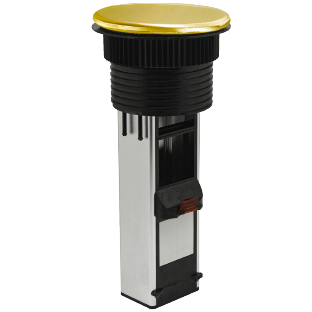 Настольный встраиваемый выдвижной розеточный блок Vertical 6 мод. (3 мод. 45х45), латунь