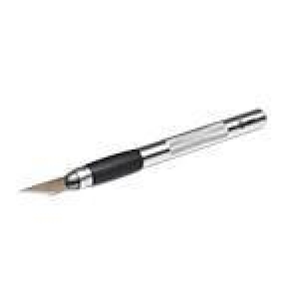 Нож моделиста НСМ-04 (КВТ) Модель: НСМ-04 Новинка! - Предназначен для художественных работ (рез ткани, картона, кожи, заготовок из резины или пластика и т.д.) - Перовое лезвие с возможностью быстрой замены - Ширина лезвия: 8мм - Материал лезвий: инструментальная сталь - Металлическая рукоятка с нескользящей вставкой - На рукоятке нанесена накатка для удобства использования - Вес: 28г - Длина: 155мм ➔Эксплуатационные характеристики (лет) - Гарантийный срок хранения: 10 - Гарантийный срок эксплуатации: 1