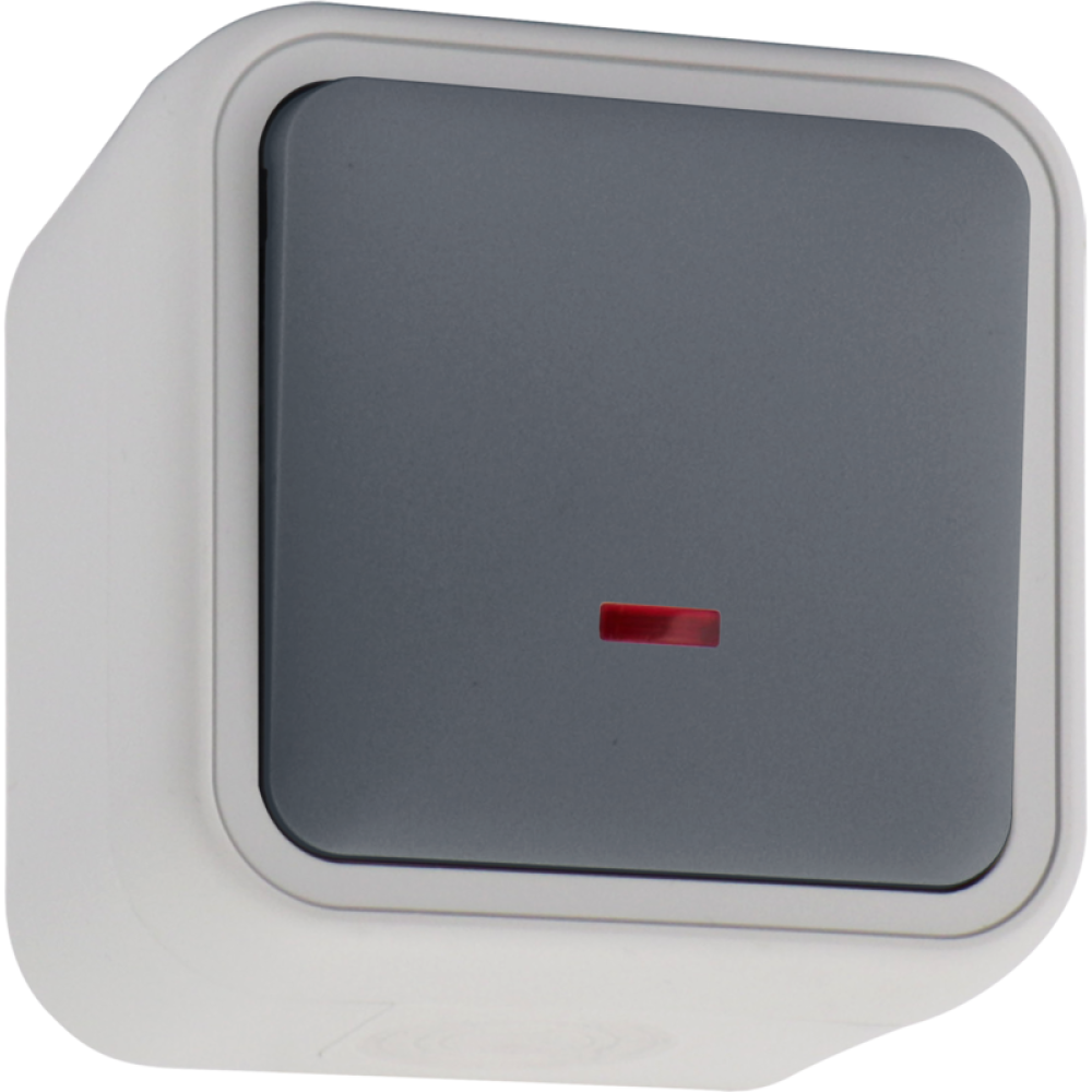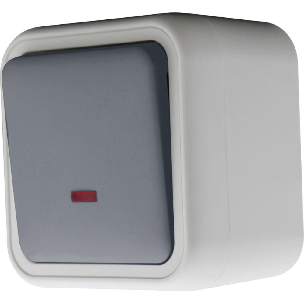Переключатель 1-клавишный накладной с подсветкой, цвет серый, IP55, серия W55