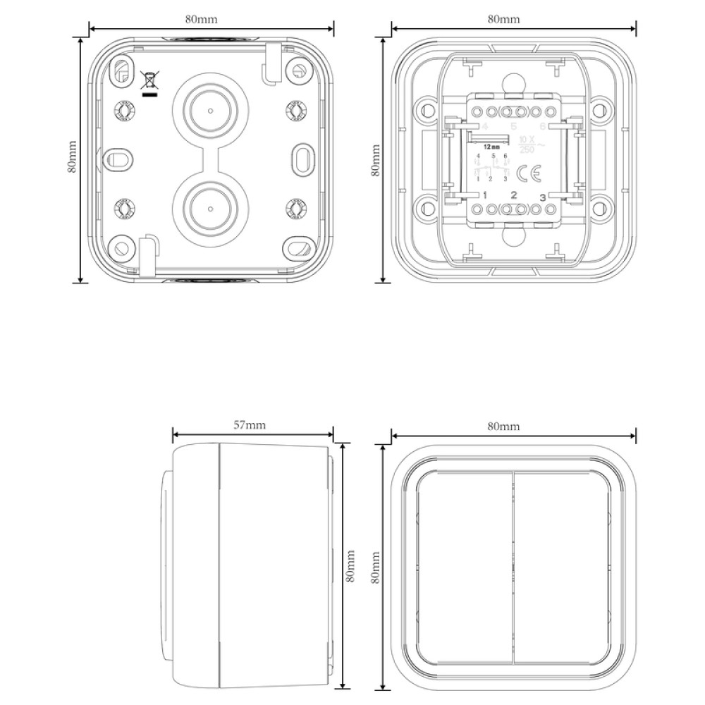Переключатель 2-клавишный накладной, цвет антрацит, IP55, серия W55