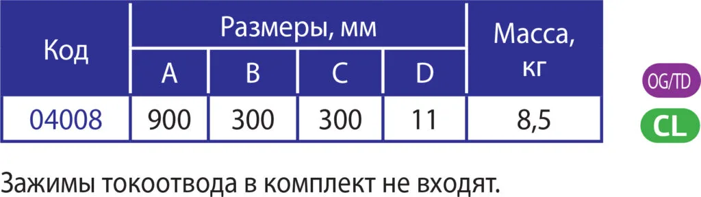 *Зажимы токоотвода в комплект не входят