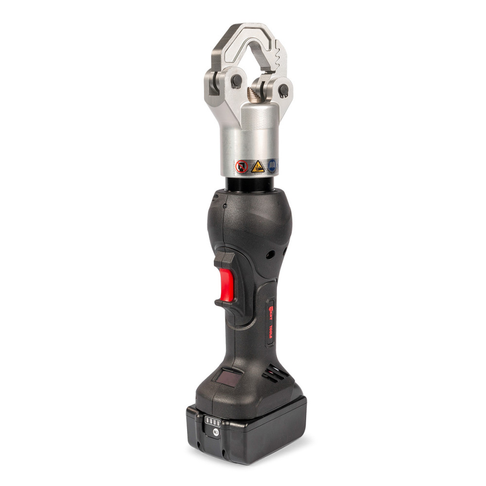 Пресс гидравлический аккумуляторный для опрессовки наконечников до 240 мм² [ /upload/medialibrary/e60/2tiizvkrq42h2wqqu5ac65qmjzmh8sjc.png ] модель:  ПГРА-240БМ - В комплекте: - аккумуляторный пресс ПГРА-240БМ - 2 аккумуляторные батареи: Li-Ion, 18 В/4Ач - зарядное устройство от сети 230 В - прочный пластиковый кейс - Диапазон сечений: - медные наконечники 10–240 мм² - алюминиевые наконечники 50–240 мм² - Автоматический возврат штока - Механизм автоматического сброса давления (АСД) - Кнопка ручного сброса давления - ЖК-дисплей с показателями: - количества рабочих циклов - температура инструмента - процент заряда аккумулятора - Вращающаяся откидная голова с фиксатором - Многоступенчатый профиль вдавливания в зависимости от сечения прессуемого наконечника - Компактная, легкая и высокопроизводительная модель - Светодиод для подсветки рабочей зоны - Светодиод-индикатор заряда батареи - Максимальное усилие: 6 т - Время опрессовки: 3–6 сек. - Время зарядки аккумулятора: 90 мин. - Вес аккумулятора: 0.58 кг - Вес комплекта: 6.8 кг - Вес инструмента: 2.10 кг - Длина: 360 мм Эксплуатационные характеристики Гарантийный срок хранения 5  лет Гарантийный срок эксплуатации 1  год Срок службы 3  года   Паспорт модели ПГРА-240БМ [ https://lib.net.ru/flipping/?pub=passports/psp-tools-pgra240bm.pdf ] SKU товарные позиции Тип инструмента Вид привода Коннекторы Тип матрицы Профиль обжима Особенности конструкции Наличие клапана АСД Максимальное усилие, тонн Длина инструмента, мм 91795 ПГРА-240БМ серия ПРОФИ пресс аккумуляторный гидравлический медные наконечники и гильзы/ алюмомедные наконечники и гильзы/ алюминиевые наконечники и гильзы встроенная клиновидный вращающаяся рабочая голова/ батареи в комлекте/ автоматический возврат штока/ индикатор заряда батареи/ встроенная матрица 6 360