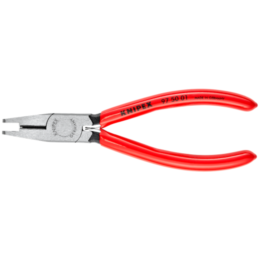 Инструмент для опрессовки для штекера типа Scotchlok с режущими кромками KNIPEX 97 50 01 KN-975001 Описание - Для опрессовки изолированных пластмассой жилрадиокабелей или сигнальных кабелей по принципу ультраконтактов в отдельных штекерах типа Scotchlok - Обжим без удаления изоляции - С дополнительно закаленными режущими кромками - С раскрывающей пружиной - Ванадиевая электросталь; кованая, закалённая в масле [ https://knipex-shop.ru/published/publicdata/WWWKNIPEXSHOPRU/attachments/SC/images/scotchlock.png ] Применение - Контакт типа Scotchlok одиночный Количество гнезд - 1 Диапазон - Ø 0,4-1,1 мм Характеристики - Полированные - Пластмассовые чехлы - Длина 155 мм - Вес 135 г [ https://knipex-shop.ru/published/publicdata/WWWKNIPEXSHOPRU/attachments/SC/images/975001.png ]