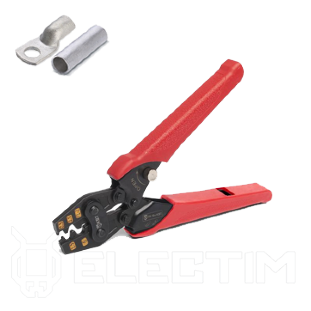 Пресс-клещи для опрессовки неизолированных наконечников Модель: ПК-6м  - Диапазон сечений: медные наконечники 1.5–6 мм² [ https://mti.by/catalog/kabelnye-nakonechniki-i-gilzy-mednye-alyuminievye-alyumomednye-zazemleniya/ ] - 4-х позиционные опрессующие губки - Опрессовка наконечников и гильз любого стандарта - Клиновидный обжим - Инструмент предназначен для опрессовки однопроволочных и многопроволочных жил - Скрытый храповой механизм обеспечивает более высокое передаточное усилие и гарантирует полный цикл опрессовки - Винт для экстренной разблокировки матриц - Самый компактный инструмент для опрессовки неизолированных наконечников малых сечений - Эргономичные рукоятки - Вес: 247 г - Длина: 175 мм Эксплуатационно-гарантийные сроки - Гарантийный срок хранения 5  лет - Гарантийный срок эксплуатации 1  год - Срок службы 3  года SKU товарные позиции Тип инструмента Управление Коннекторы Профиль обжима Особенности конструкции Длина инструмента, мм 78865 ПК-6м (КВТ) пресс-клещи ручной медные наконечники и гильзы клиновидный встроенная матрица/ храповой механизм/ механизм разблокировки 175