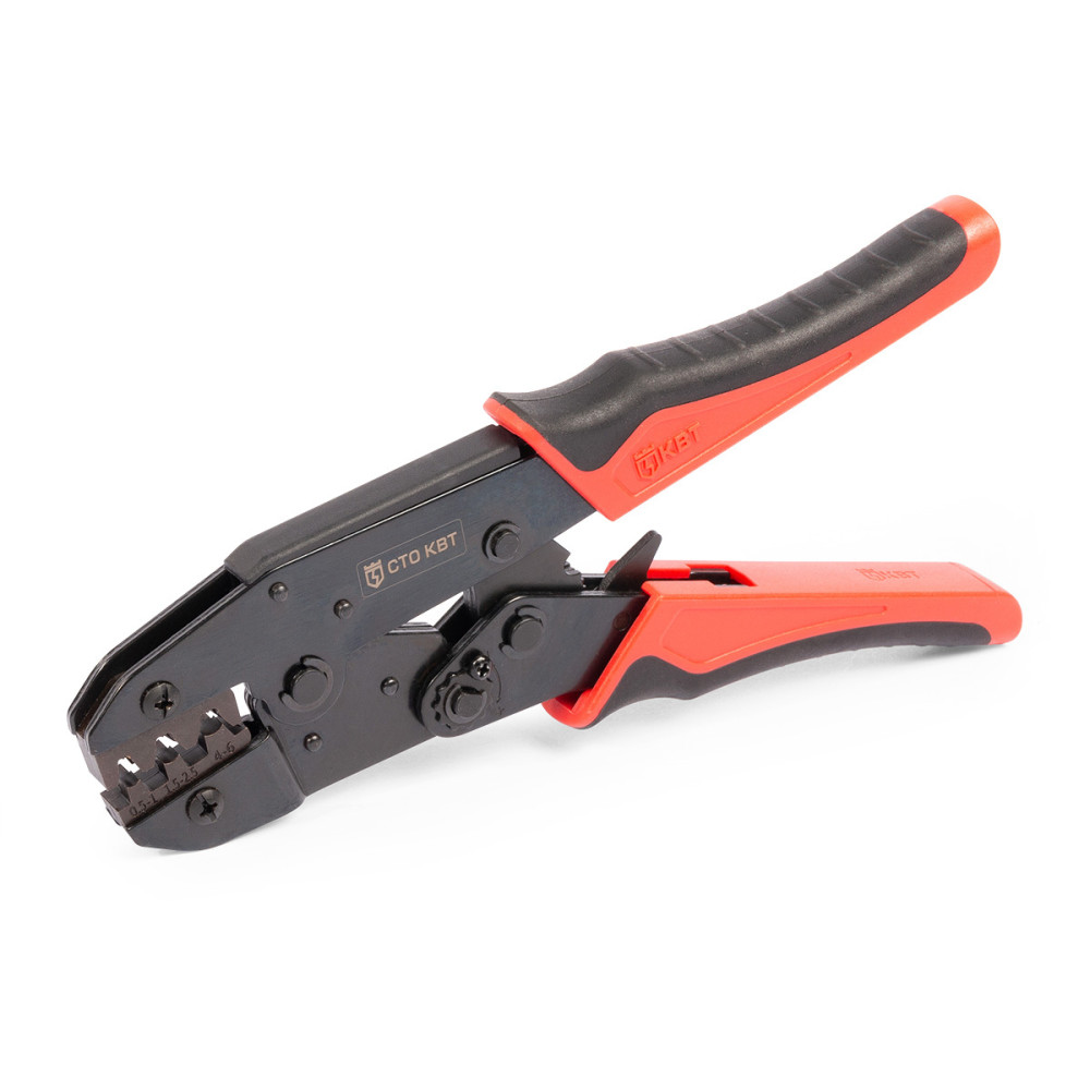Пресс-клещи СТО-14 серия ПРОФИ (КВТ) Серия ПРОФИ - Классическая конструкция, надежная механика - Материал корпуса: качественная 3-миллиметровая сталь - Храповой механизм, обеспечивающий блокировку обратного хода до завершения полного цикла опрессовки - Устройство разблокировки храпового механизма - Регулятор прижимного усилия матриц - Рельефные двухкомпонентные рукоятки с мягкими вставками из нескользящей термопластрезины - 9 дюймов классического дизайна - Совместимость: все матрицы МПК (КВТ) - Обработка поверхности корпуса: воронение - Вес: 490 г - Длина: 225 мм 90760 СТО-14 серия ПРОФИ (КВТ) [ https://techelectro.ru/prod/wiring-tools/crimpers/insulugs-crimp/sto/sku_90760/ ] пресс-клещи механический трехпозиционная/ быстросменная наконечники из листовой меди Опрессовка неизолированных разъемов и наконечников (автоклемм) под двойной обжим по жиле и изоляции РП-М и РП-П (шириной 2.8; 4.8; 6.3; 7.5 мм), НК, ГС сечением 0.5 - 6 мм² лепестковый двухконтурный храповой механизм/ возможность использования матриц МПК/ сменные матрицы/ регулятор прижимного усилия/ механизм разблокировки 225