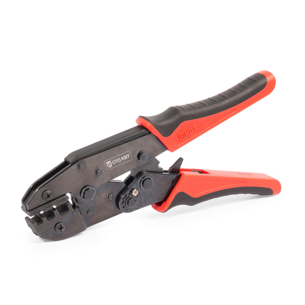 Пресс-клещи СТО-16 серия ПРОФИ (КВТ) Серия ПРОФИ - Классическая конструкция, надежная механика - Материал корпуса: качественная 3-миллиметровая сталь - Храповой механизм, обеспечивающий блокировку обратного хода до завершения полного цикла опрессовки - Устройство разблокировки храпового механизма - Регулятор прижимного усилия матриц - Рельефные двухкомпонентные рукоятки с мягкими вставками из нескользящей термопластрезины - 9 дюймов классического дизайна - Совместимость: все матрицы МПК (КВТ) - Обработка поверхности корпуса: воронение - Вес: 490 г - Длина: 225 мм 90762 СТО-16 серия ПРОФИ (КВТ) [ https://techelectro.ru/prod/wiring-tools/crimpers/insulugs-crimp/sto/sku_90762/ ] пресс-клещи механический быстросменная/ трехпозиционная двойные втулочные наконечники Опрессовка двойных изолированных втулочных наконечников НШВИ (2) сечением 2х6 - 2х16 мм² трапециевидный храповой механизм/ возможность использования матриц МПК/ сменные матрицы/ регулятор прижимного усилия/ механизм разблокировки 225