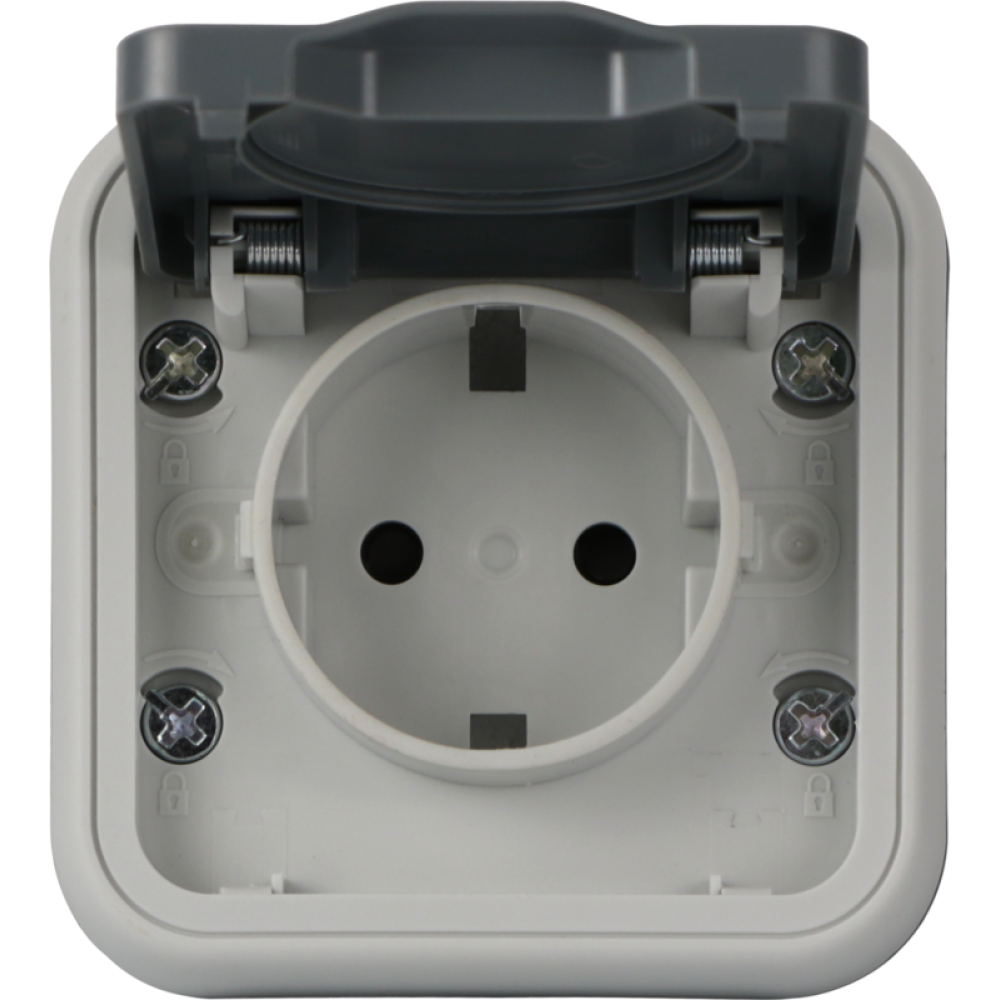 Рамка с крышкой для скрытой установки розетки одиночный, цвет серый, IP55, серия W55