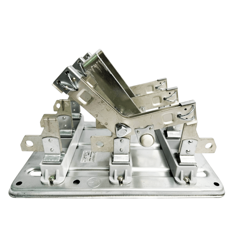 Контактная система ножевого типа обеспечивает видимый разрыв цепи для безопасного обслуживания. Контактное нажатие создается пружинами на контактных стойках и сферическими шайбами на шарнирных стойках, что гарантирует стабильность соединений и минимальное переходное контактное сопротивление.