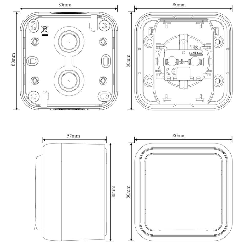 Donel W55 Розетка 1-я с защ.крышкой, 2К+З. и шт., накладная, серый, IP55, серия (тип) DIP55