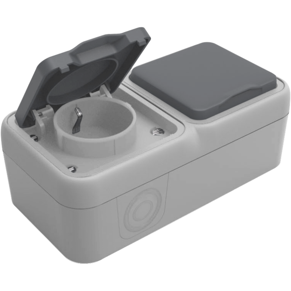 Розетка 2-я с защитной крышкой, 2К+З, накладная, цвет серый, IP55, серия W55
