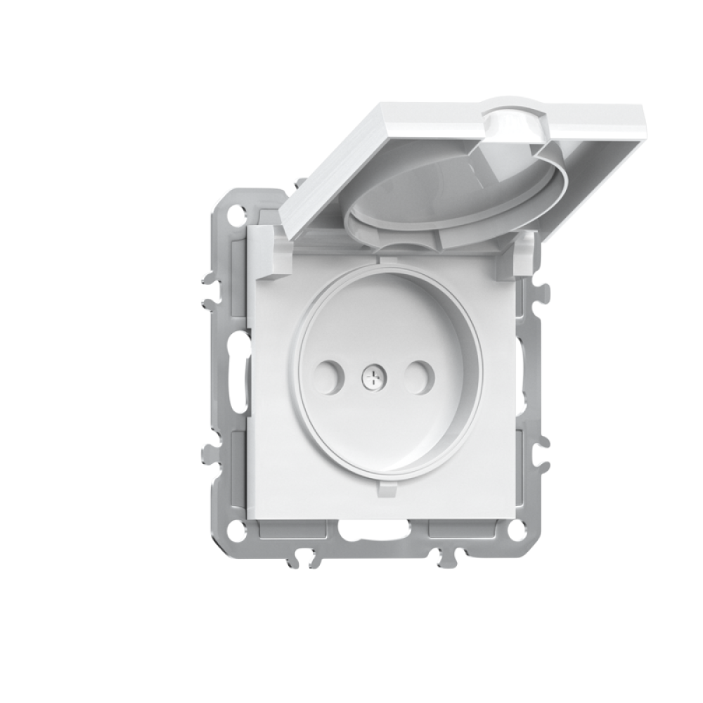 Розетка 220В без заземления 1-я, со шторками, с крышкой, 16А, на винтах, глянцевый белый Donel A07
