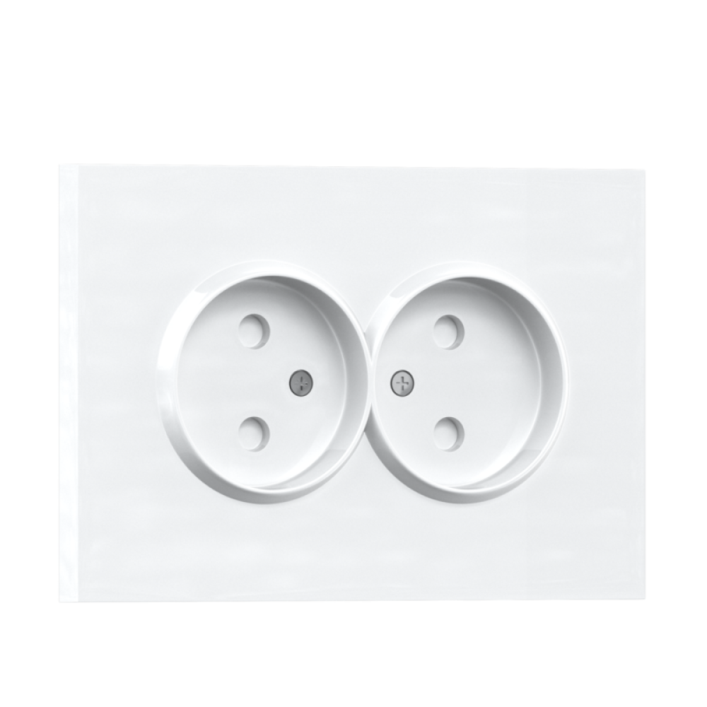 Розетка 220В без заземления 2-я, со шторками, 16А, на винтах, глянцевый белый Donel A07