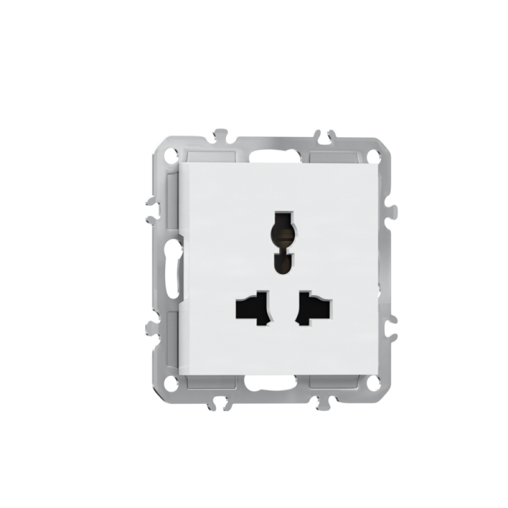 Розетка 220В универсальная мультистандарт, 16А, на винтах, глянцевый белый Donel A07