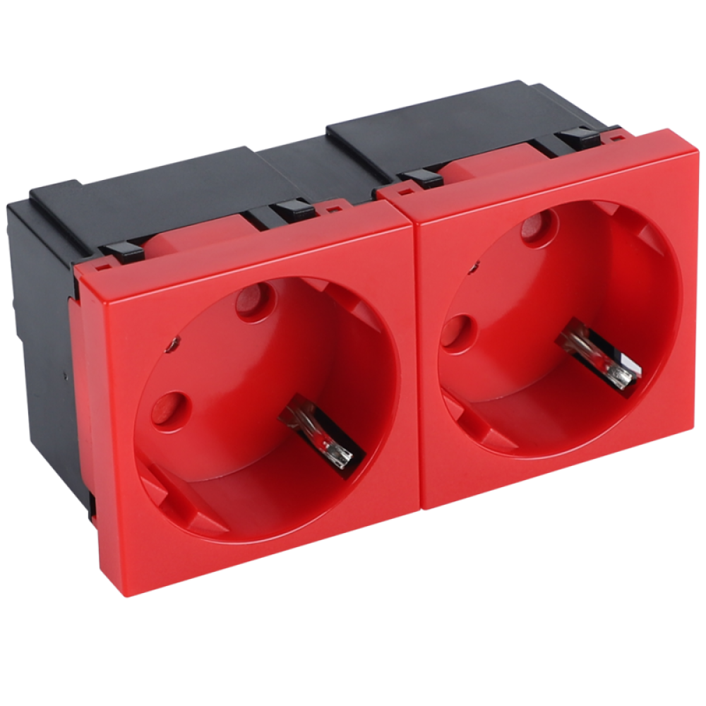 Розетка 2х2К+З нем.ст., 45 гр., с з/ш, крас. (90х45мм), серия (тип) DF6