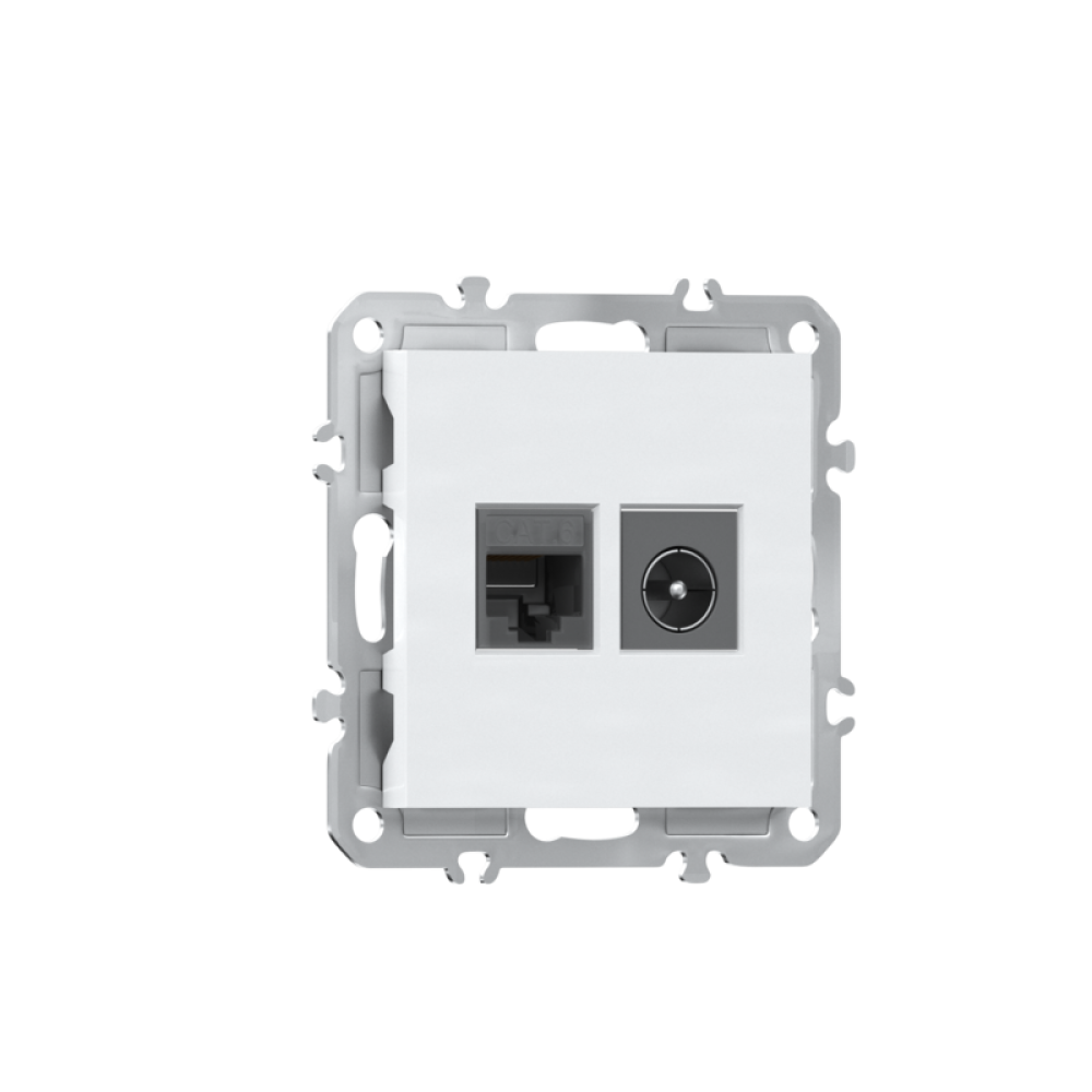 Розетка комбинированная RJ45/TV cat.6, ClassE-8/0-2400 МГц, глянцевый белый Donel A07