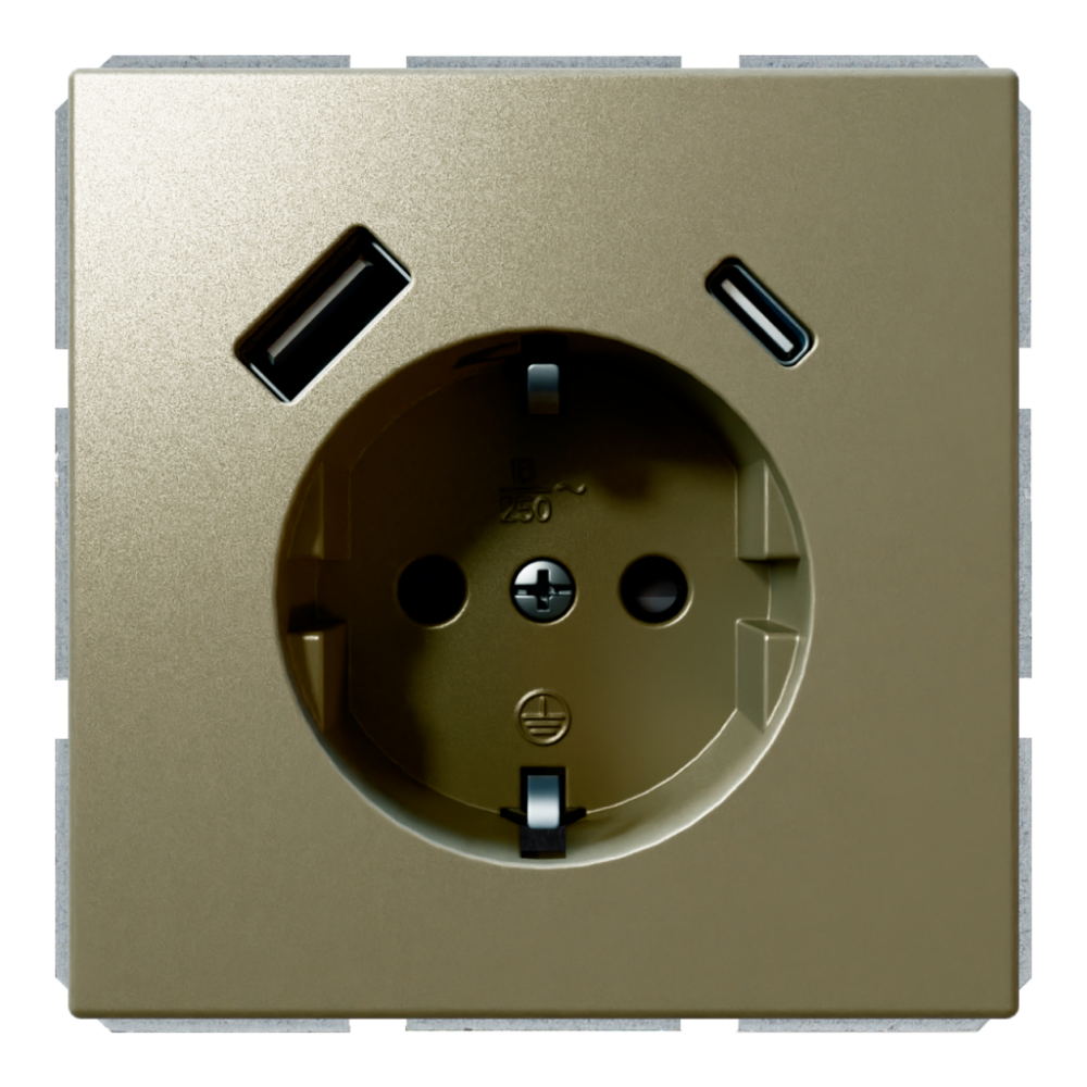 Розетка SCHUKO® с зарядным USB-интерфейсом 25Вт (A+C) - FD (бронза), артикул FD5501USB-25BR