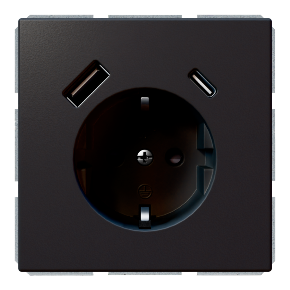 Розетка SCHUKO® с зарядным USB-интерфейсом 25Вт (A+C) - FD (черный матовый - soft touch), артикул FD5501USB-25PBM